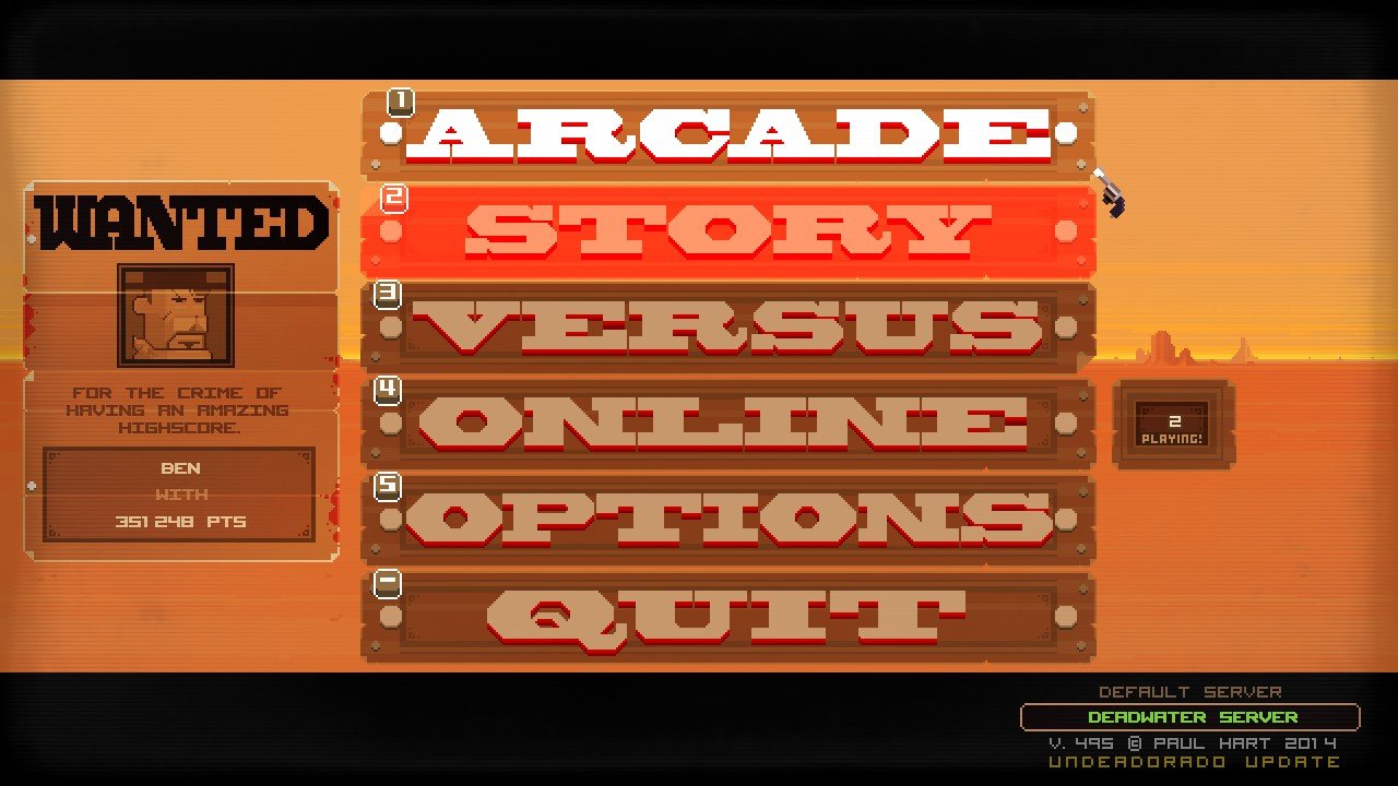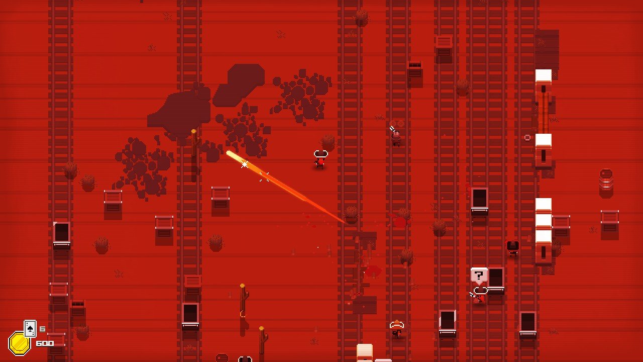 Devolver Digital a souvent choisi d’éditer des jeux aux graphismes pixels baignant dans une ultra-violence qui transparaît malgré le côté grossier des décors et des personnages. On pourrait citer des jeux tels que Hotline Miami, Not a Hero ou encore Mother Russia qui reste à paraître mais qui s’annonce déjà très gore et brutal. L’association de Devolver avec le développeur FarmerGnome ne déroge pas à la règle et nous entraine dans l’ouest américain où la loi des gunslingers règne.