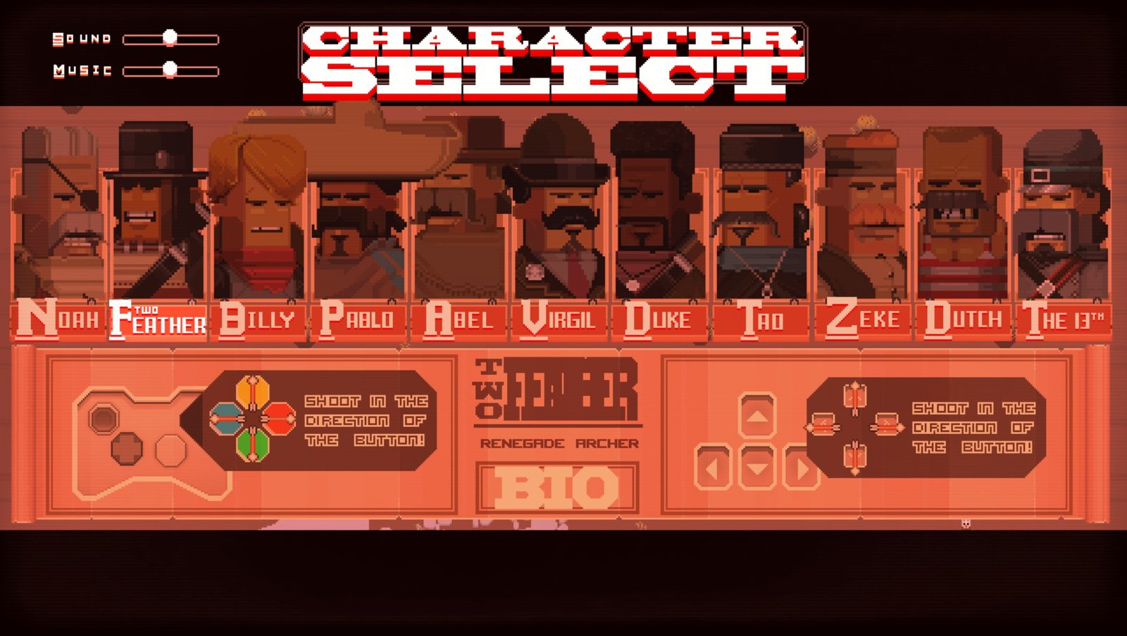 Graphiquement parlant, c’est du pixel art plutôt bien rendu. Les zones sont variées et les teintes aussi, on voyage dans les plaines et petits bourgs du Far West. Au premier abord ça n’a pas l’air de grand chose surtout en plein bullet hell mais finalement c’est assez sympa.