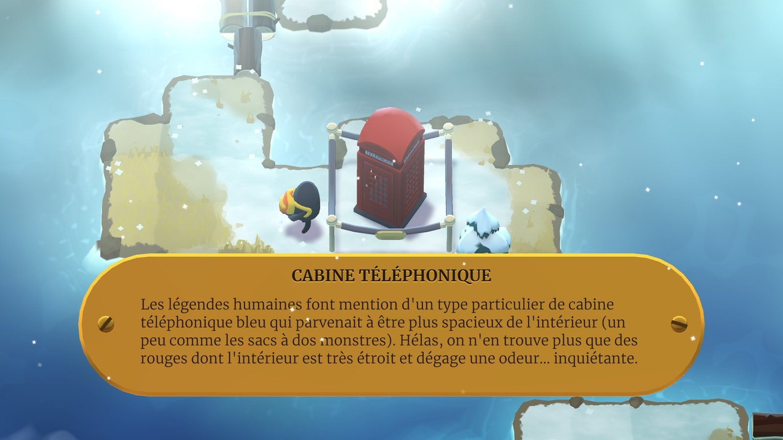 Malin à n’en plus finir tout au long de la dizaine d’heures de jeu nécessaire pour arriver au bateau de fin (comptez le double si vous voulez finir le jeu à 100% et trouver tous les secrets), A Monster’s Expedition n’a qu’un seul petit défaut inhérent à sa durée de vie : on peut rapidement se sentir perdu sur une île bien trop difficile à cause de son monde un peu libre et de la possibilité d’être en terrain « secret » où la réponse à l’énigme est plus complexe que dans votre progression naturelle. C’est quelque chose qui n’était pas dans le très court « A Good Snowman » et qu’il va falloir apprivoiser ici. La règle d’or est donc l’habituel conseil de darons : « lâchez la manette, allez prendre un peu l’air, et revenez ensuite ou après une bonne nuit de sommeil ». Et parce que le jeu est si bien fait, tout va vite se déverrouiller avec un naturel déconcertant.
