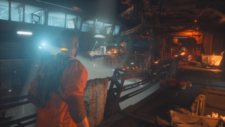 Un homme raconte à son enfant l’épopée incroyable qui lui est arrivée dans ses plus jeunes années. L’histoire de son oncle, un scientifique aux milles idées, qui découvre un portail vers un monde extraordinaire d’îles volantes et d’un peuple mi-humain, mi-batracien. Tout commence en mode exploration : on peut avancer, zoomer et interagir avec des objets surlignés. Puis la découverte d’un gant aux propriétés incroyables ouvre les portes du gameplayOu « jouabilité » en français, fait référence à la façon dont le joueur interagit avec un jeu vidéo. au joueur curieux de voir vers ou le mène ce jeu hors du commun. Et on y découvre de la plateforme, du grappin, des sauts, des chutes, bref… de l’aventure plutôt dynamique. Le gant possède la capacité de charger de l’énergie permettant d’améliorer les sauts réalisés avec la combinaison trouvé dans le laboratoire. Vous pressez votre clic droit et une fois chargé, en le lachant, vous vous envolez dans les airs. Ceci est à combiner avec la course, l’habituelle touche Shift pour ceux qui continuent de jouer (à raison) au clavier et à la souris. Si vous courrez et sautez avec votre énergie, alors vous ferez un bond majestueux mais plus difficilement contrôlable. Au fil de l’aventure, le gant gagne en propriétés. Sur le dos du gant, un cercle est entouré de trois barres d’énergie. Au début du jeu vous n’en avez qu’une et vous en gagnerez deux autres. Celles-ci vous permettent d’utiliser un grappin télékinesique : il vous suffit de viser quelque chose de solide pour vous y accrocher et vous voir transporté jusqu’à ce point. Vous pouvez vous en servir pour prendre de la vitesse et jouer avec la physique pour atteindre des endroits plus complexes. En début du jeu vous ne pourrez utiliser ce grappin qu’une seule fois par saut… puis vous débloquerez la possibilité de vous en servir deux fois, puis trois fois par essai.