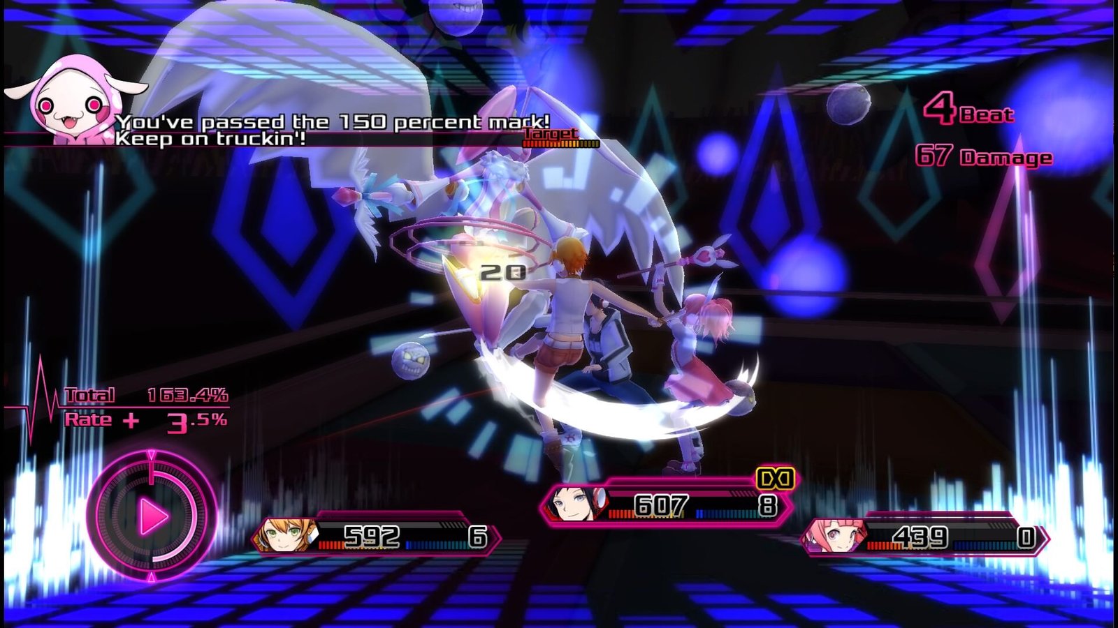 Si le jeu n’a rien de rythmé avec son OST, il s’en sert néanmoins de façon très originale. En vous battant dans les donjons qui viennent souvent conclure les épisodes narratifs à base d’allers, de retours et de dialogues pas tous très intéressants, vous allez devoir choisir une musique parmi celles que vous avez débloquées tout au long de votre progression. Celle-ci s’entendra lors des combats, vus « en 2D » façon « Tales of » et permettant d’enchaîner les coups en nombre limité avant qu’ils se rechargent. Des coups spéciaux sont évidemment de la partie, placés sur les directions du stick analogique gauche.