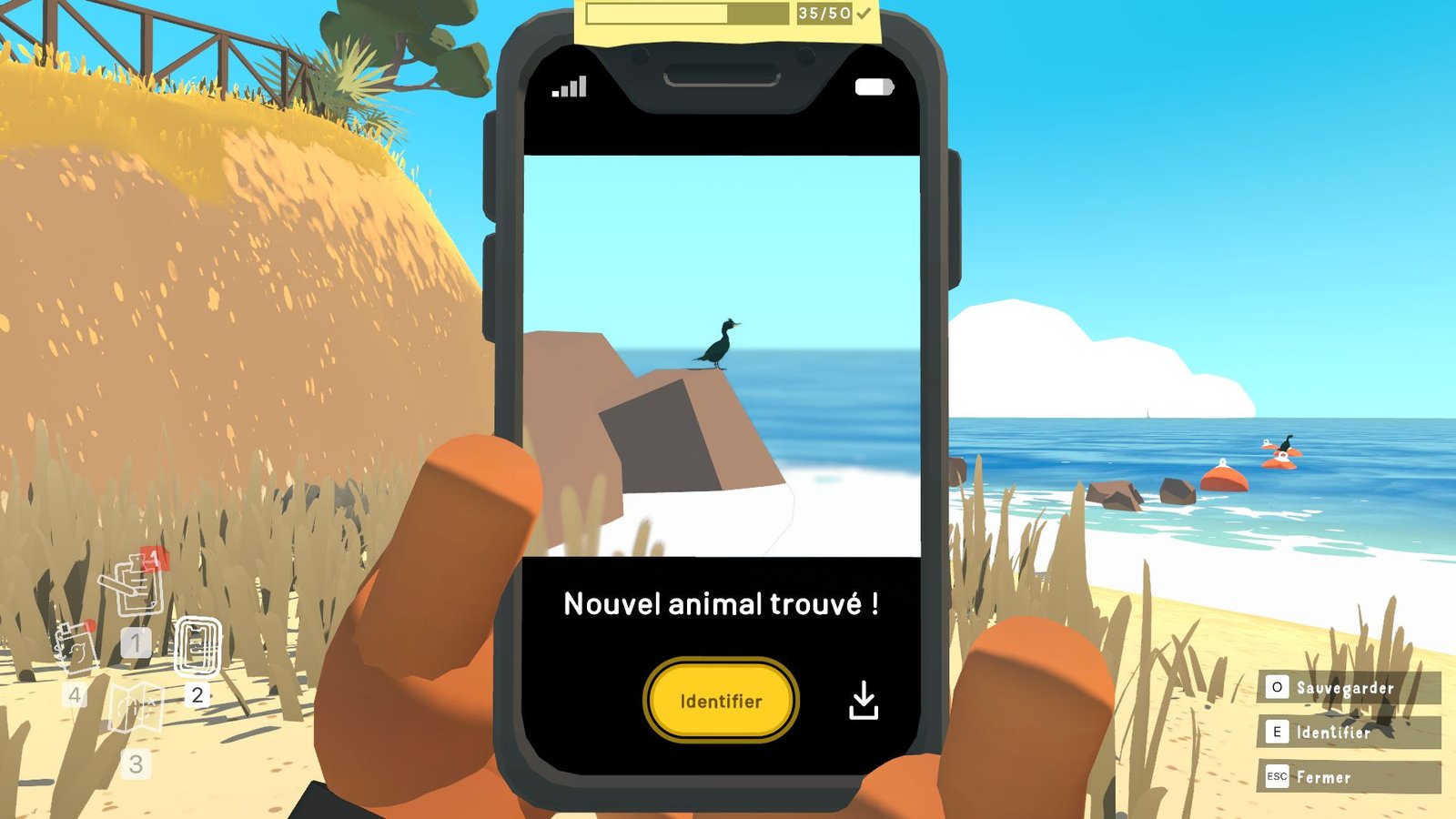 Avec une encyclopédie dans une poche et un téléphone dans l’autre, vous vous baladez et dès qu’un animal est à portée, vous pouvez le photographier pour l’identifier. Si vous êtes ignorant comme moi (j’ai une méconnaissance gigantesque dans ce domaine), le jeu vous présente l’animal avec une photo, son nom commun, son nom scientifique et quelques autres informations. J’aurais aimé en savoir plus (sa zone géographique principale, sa taille, etc.), mais rien ne vous empêche d’ouvrir Wikipédia à côté comme j’ai pu le faire. Il y a soixante-deux clichés à prendre et certains demandent de bien fouiller la carte ou, dans certains cas, attendre des moments précis (objectif à remplir ou jour à atteindre) pour que l’animal daigne vous rendre visite.