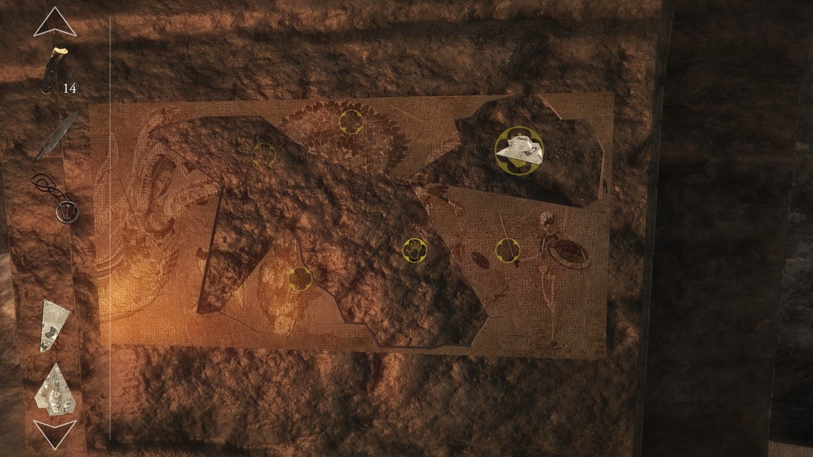 Chaque lieu de l’île séparé par un chargement possède son lot de « collectiblesObjet d'inventaire devant être collectionné. » à récupérer pour terminer des missions annexes qui, scénaristiquement parlant, ont moins d’importance. Ces collectibles ont pour but de vous faire connaître l’île sur le bout des doigts en vous forçant aux allers et retours certes optionnels, mais bienveillants pour la suite. Même chose avec les dieux et leurs statues qui se mouveront et vous donneront des indices, des ordres, des directives à suivre pour faire avancer l’histoire de la plus nette des façons. Ces idées scénaristique servent un texte de façon interactive et massive à l’écran. C’est réussi alors que pourtant, le moteur de jeu crache tout ce qu’il peut pour ne pas défaillir.