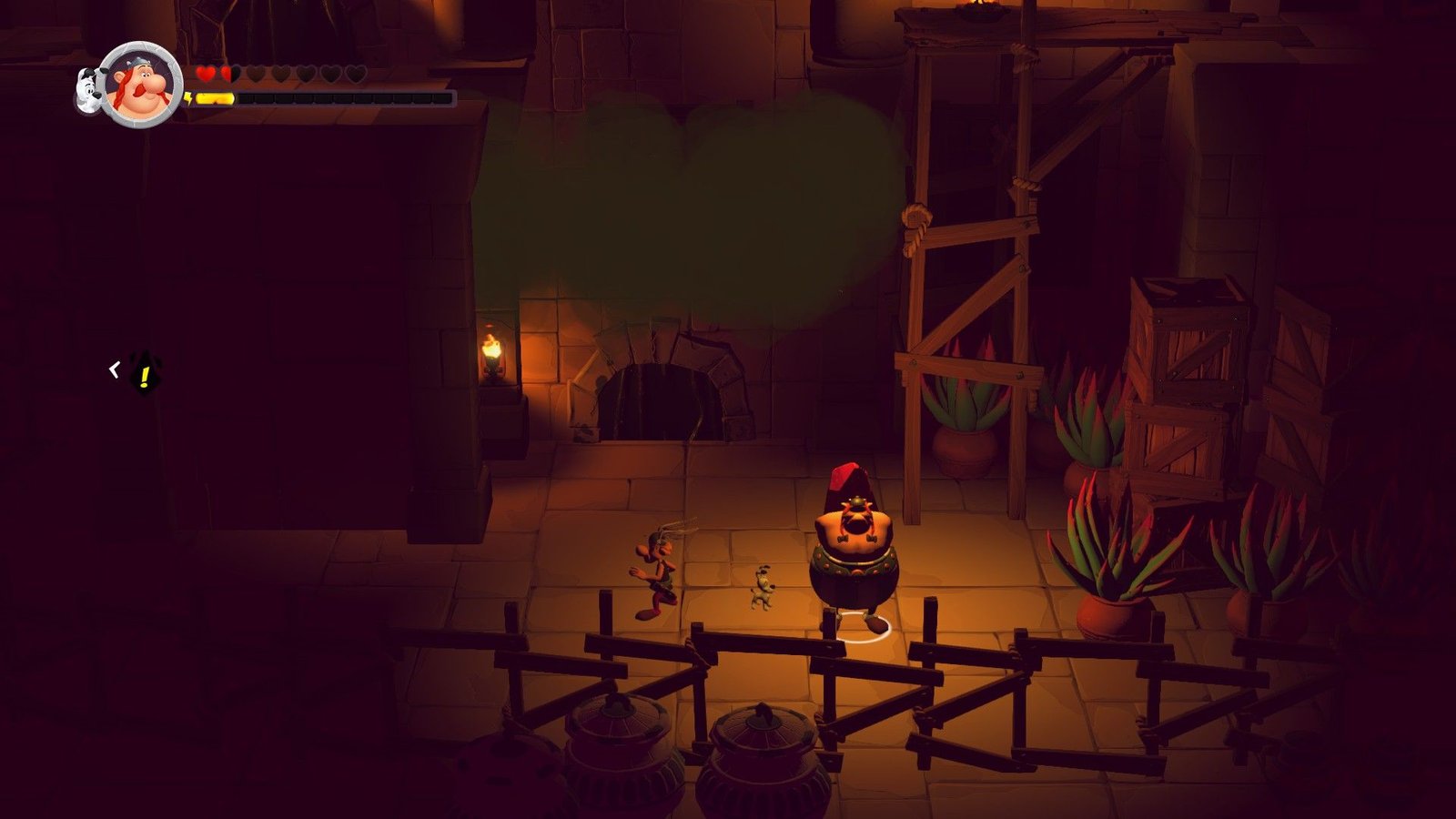 Racontant l’histoire un peu folle (mais qui s’en plaindra) d’Astérix & Obélix partant à la recherche d’un menhir « magique » aux pouvoirs élémentaires forcément recherchés par les romains, le joueur se retrouvera donc à jouer soit Astérix, soit Obélix, en claquant la gâchette pour changer de personnage. Il est aussi possible de jouer en coopération dans un style qui n’est pas foncièrement mauvais, même si la caméra ne s’en sort pas toujours avec les honneurs.