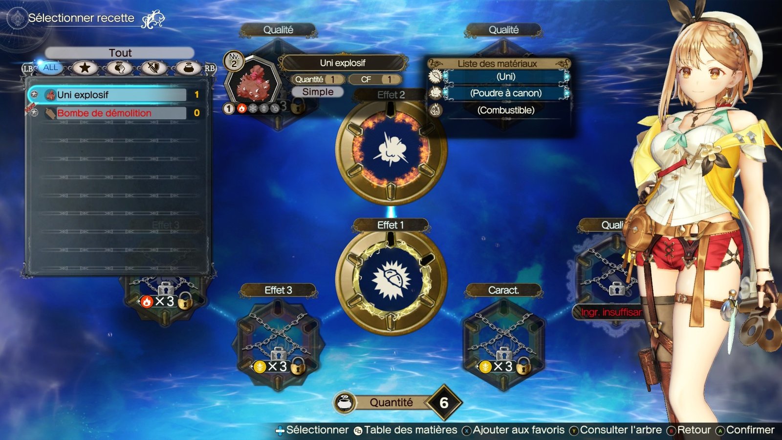 Les mauvais points s’accumulaient. Je rageais tout seul dans mon coin de plus en plus. Et quand arrivait la période propice à l’alchimie, ton cœur de métier, je m’enfonçais encore plus dans mon chagrin. Jamais, au grand jamais, je n’ai eu affaire à une telle interface insipide. Je bénis allègrement les personnes qui ont eu l’idée d’automatiser ce dispositif laborieux qui consiste à mélanger diverses marchandises pour en produire de nouvelles. Sauf que je ne comprenais jamais ce que je faisais. C’est mal expliqué, je me suis alors forcé à explorer Internet. J’ai trouvé des solutions, elles-mêmes imbitables, car, si vous jouez à Atelier Ryza 2 : Les Légendes oubliées & Le Secret de la Fée , c’est que vous connaissez déjà l’univers.