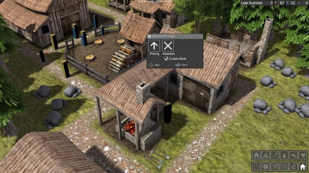 Niveau contenu (bâtiments constructibles et différentes ressources) , on est pas trop mal, mais ça reste plutôt moyen à côté d’un Anno ou d’un Caesar (pour ne citer qu’eux) . Le seul mode de jeu disponible (sandbox) devrait tout de même vous occuper de nombreuses heures et un système de seed vous permet de partager les maps. On peut regretter le manque d’un mode campagne avec des objectifs à remplir , mais vous pouvez jeter un coup d’oeil aux succès du jeu pour ça (sur Steam) . Pas non plus d’évolution du côté de vos bâtiments, Quelle que soit la taille de votre ville ou le nombre d’habitants, une maison en bois restera une maison en bois.
