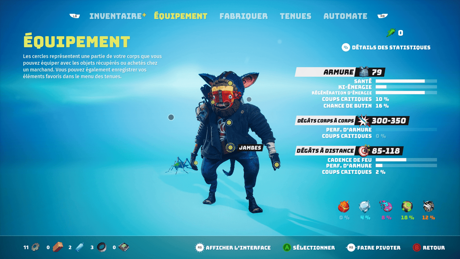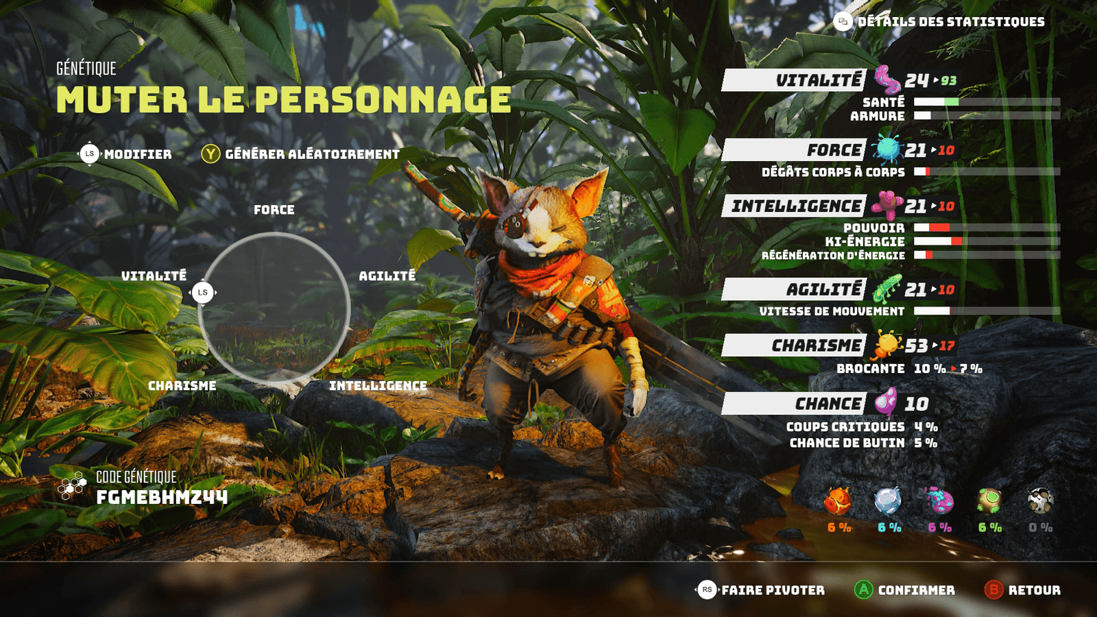 Biomutant est aussi un RPG, du coup on vous demandera de placer des points d’aptitude à chaque niveau de personnage déverrouillé. Et si comme moi vous mettez tout dans la Chance, alors votre potentiel de bon loot sera démultiplié et le craft ne servira définitivement plus à rien. C’est dommage car l’idée est toujours bonne et surtout, la réalisation est intéressante : il y a beaucoup de types de matériaux à débloquer et d’effets à placer sur nos armes et armures. Mais le loot étant toujours plus puissant, on s’en passera rapidement.
