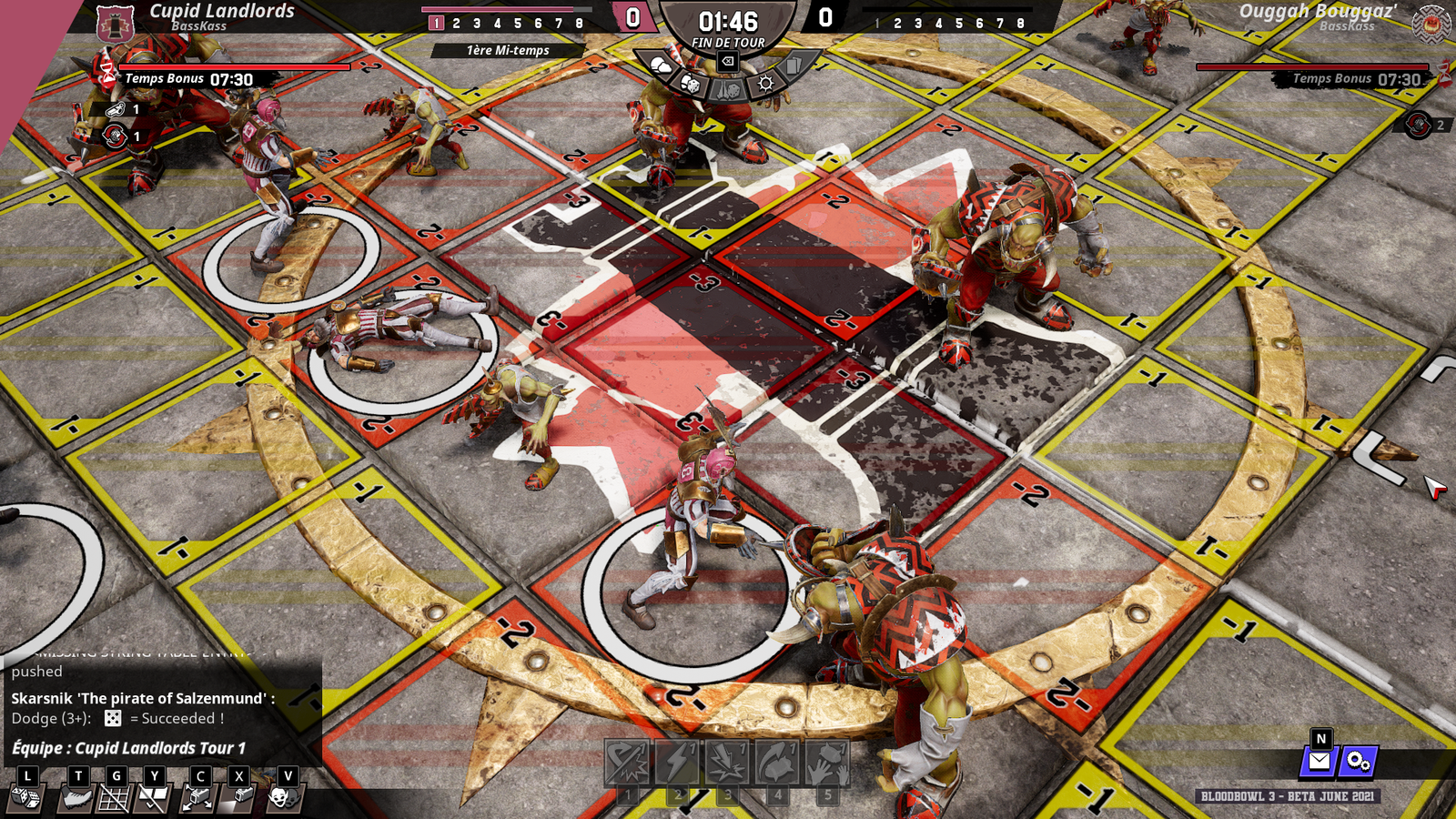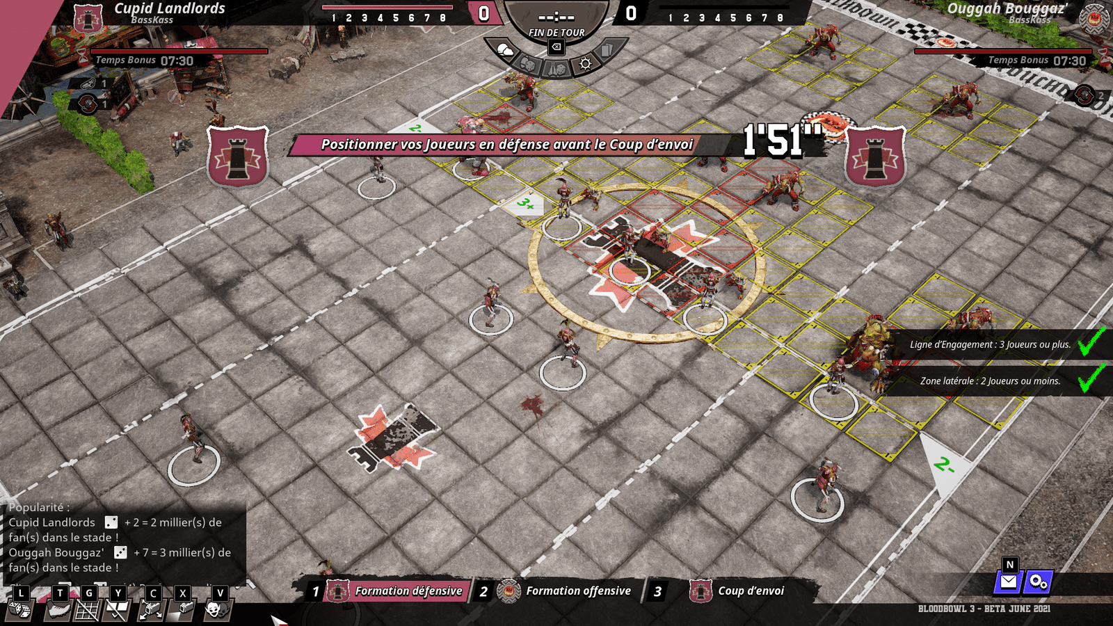 Pour le reste, et parce que c’est une version non définitive d’un jeu qui promet accès anticipé en septembre 2021 et sortie définitive en février 2022, l’interface est peu claire et la sélection de joueurs encore assez problématique. Blood Bowl 3 est un jeu qui propose de nombreuses actions nécessitant d’être calculées à la case et au lancer de dés près, et le temps accordé à chaque tour a tendance à filer très vite alors qu’on souhaite juste changer de joueur actif ou revenir sur sa décision de cliquer sur le ballon plutôt que sur la case d’à côté. Quant à l’IA, et bien elle ne propose encore aucune difficulté, et se refuse catégoriquement à marquer même si on lui laisse volontairement le chemin libre jusqu’à l’en-but. Espérons que les coachs artificiels retrouveront au plus vite leur manuel du parfait petit entraîneur de psychopathes décérébrés lorsque sera venu le temps pour les joueurs de découvrir la nouvelle campagne solo scénarisée promise à la sortie.