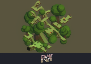 Je termine avec le dernier jeu de mon périple : GAME OVER , réalisé lors d’une Game Jam et entièrement jouable par navigateur (cliquez sur le nom du jeu pour l’ouvrir). Derrière des graphismes minimalistes se cache un puzzle plateformerUn genre dont le gameplay principal repose sur aller d'un point A à un point B, entrecoupés de séquences de sauts ou équivalents. bien pensé ou il faudra récolter les cristaux de chaque niveau avant d’atteindre la sortie. Pour trouver les pierres précieuses, le joueur devra user de la caméra en la faisant pivoter, afin de révéler les différents passages ou plateformes secrètes.