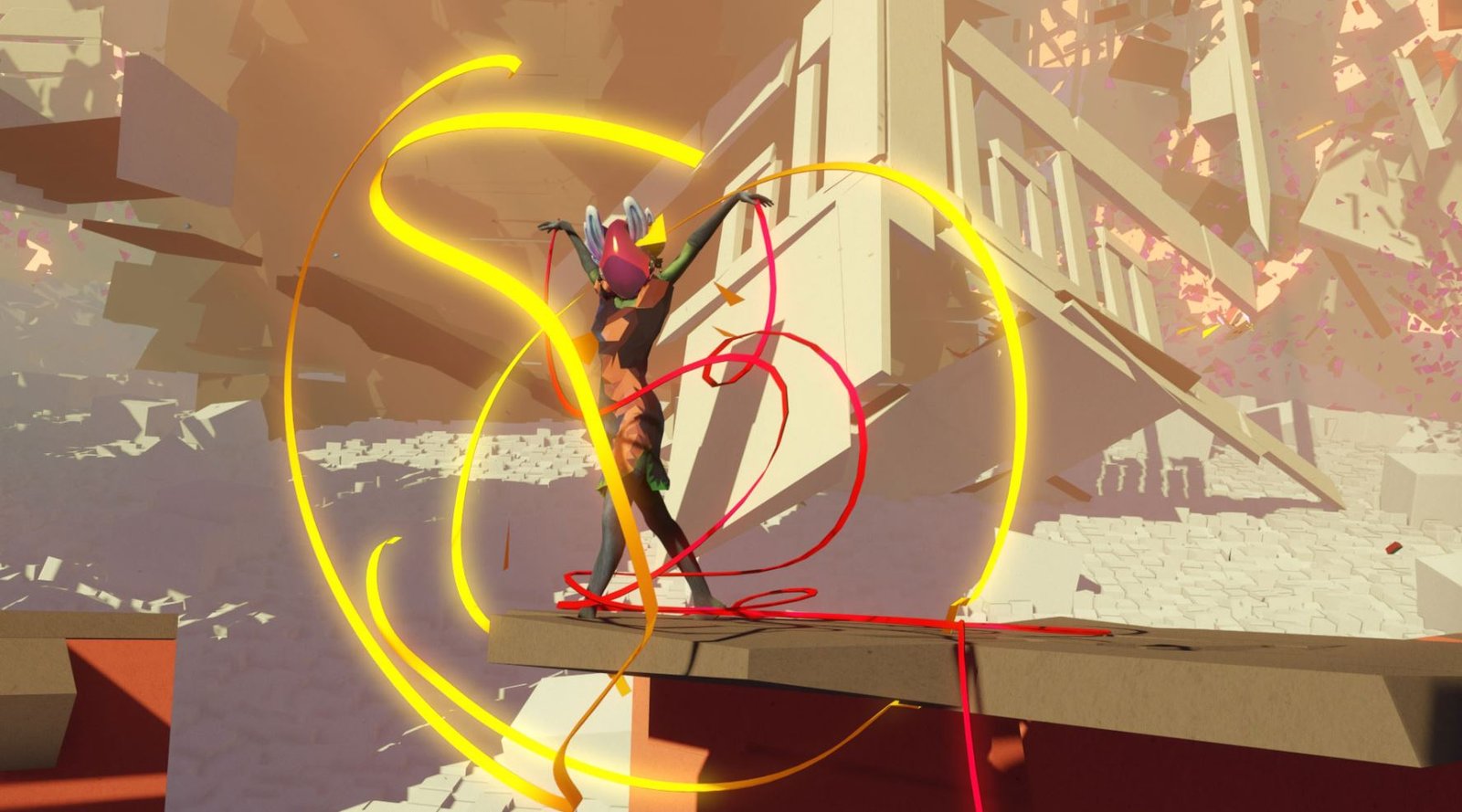 Bound est en quelque sorte un jeu de plateforme narratif. Son histoire, bien que simple, se dévoile petit à petit et est étonnamment bien mise en scène au travers d’un vaste monde onirique qui paraît se désagréger et se morceler. Au milieu de ce paysage à la géométrie étrange, le protagoniste est une danseuse, ou plutôt une sorte de princesse dont chaque mouvement est un pas de danse . Elle évolue au milieu de cette atmosphère irréelle avec grâce et élégance, et sa façon de se mouvoir, autant que la narration par le design elle-même, insuffle une réelle sensation de mouvement vers l’avant.