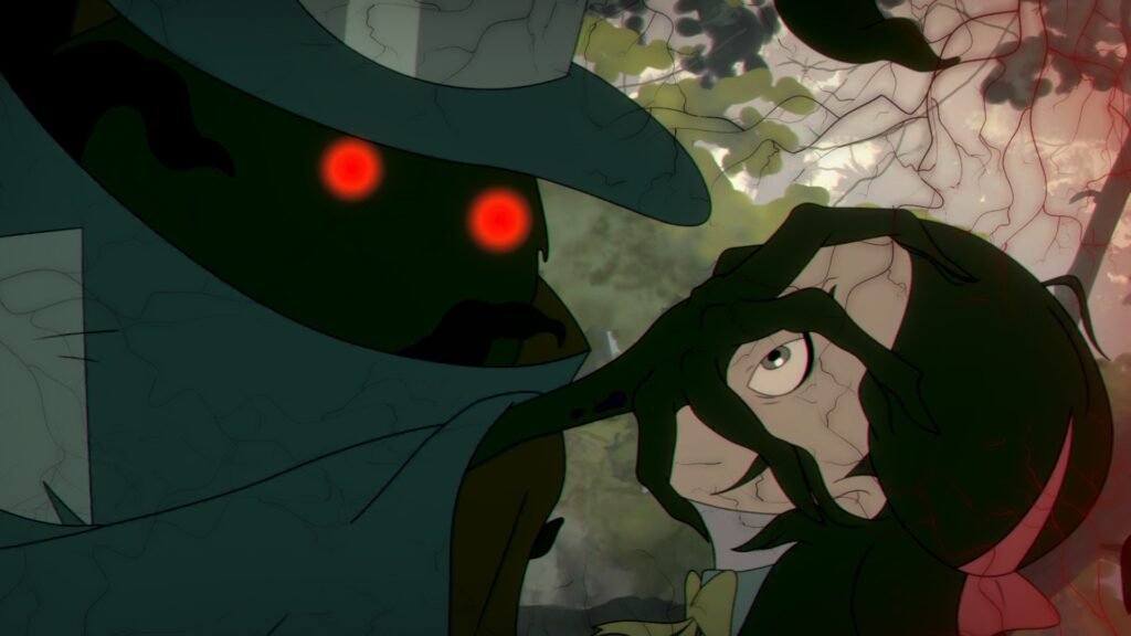 C’est ainsi qu’elle se retrouve confrontée à un nouveau monde nommé Corolla et, d’après les petits oiseaux qui viennent l’aider et lui parler, elle en serait la princesse dont ils attendaient impatiemment le retour. Un lapin à lunettes lui dérobera également la lettre et l’entraînera dans des environnements de plus en plus lugubres, où une chouette et d’autres créatures aux yeux rouge semblent représenter un danger évident. Elle finira par croiser celui qui dirige tout cela et qui la pourchasse pour une raison qu’elle ignore : M. Kyn, un individu métamorphe fait de goudron et qui porte un haut de forme. Au cours de son aventure, elle pourra également compter sur l’aide de M. Baesie, un être dégingandé, tout en longueur, à la tête mal fixée et au parapluie lui permettant de voler et se battre. De plus, un mystérieux garçon ayant apparemment un lien avec Carole arpente les couloirs de Bunny Hall. Qui est-il et que veut-il ? Sans parler de cette silhouette encapuchonnée qui l’observe depuis les fenêtres de l’orphelinat. Que de mystères à résoudre.