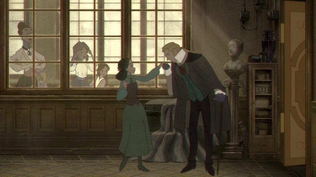 Le symbolisme autour du temps est omniprésent, comme le témoigne la présence des horloges qui viennent rappeler que les minutes, les heures, mais aussi les années passent et qu’il n’est pas possible de revenir en arrière. Les gens changent, les lieux changent, il n’y a rien à y faire sinon l’accepter. Il ne faut pas avoir peur de grandir, au contraire, il faut trouver en soi le courage de faire face aux évolutions qui viennent bouleverser notre quotidien. Inutile de fuir ce monde pour se réfugier dans sa bulle protectrice, en cherchant à arrêter le temps qui ne cesse de vous filer entre les doigts. Et parmi les bouleversements de ce début du XXème siècle au Royaume-Uni, il y a le mouvement des suffragettes qui est en passe de renverser le patriarcat bien installé, en cherchant à défendre la cause féminine et à libérer la femme de l’emprise des hommes. Ces derniers n’ont donc vraiment pas le beau rôle dans cette histoire. Prétentieux, supérieurs, condescendants, goujats, malotrus, irrespectueux… ce ne sont pas les termes péjoratifs qui manquent pour les décrire. Fini les mariages forcés et la rigueur imposée à la femme anglaise, l’heure de la révolution a sonné !