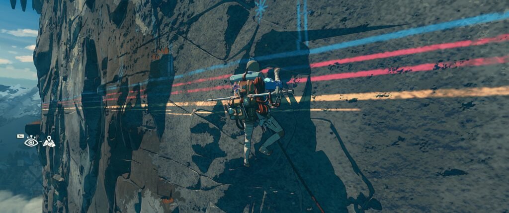 Me voilà embêté maintenant. Parce que j’ai l’air d’un gros vendu à encore parler d’un jeu montpelliérain comme si c’était le messie et, pire que tout, je ne trouve pas de choses à redire sur le jeu. Il y a bien eu des moments rigolos avec des bugs de collision (qui se sont débloqués tout seuls au final), quelques frustrations à cause d’une main qui ne se pose pas vraiment où on veut en moment critique et un inventaire un poil trop chiant à manipuler dans le sac à dos (surtout quand il est plein à craquer). Mais tout ça n’est que de l’ordre du détail, des choses qui, honnêtement, ne dérangent jamais le gameplayOu « jouabilité » en français, fait référence à la façon dont le joueur interagit avec un jeu vidéo., et ne sont au final amplifiées que parce qu’elles sont rares. Il a même l’outrecuidance de proposer plusieurs paramètres d’accessibilité qui peuvent rendre le jeu moins dur (il y a aussi des niveaux de difficultés) et plus agréable pour les personnes qui n’aiment pas trop gérer des ressources ou des QTE. Un p’tit trigger warning au passage vu qu’il pourra provoquer des vertiges aux personnes plutôt sensibles au vide et à la hauteur, vu qu’il arrive très bien à transposer tout ça, même à la 3ᵉ personne.