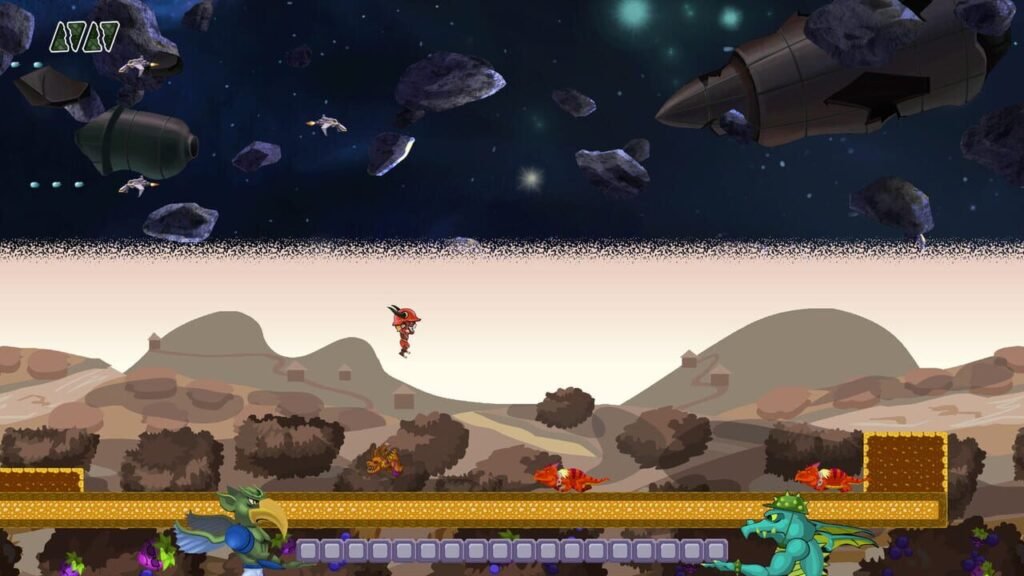 Tout d’abord, commençons par nous intéresser à votre idée principale : à savoir mélanger plusieurs styles de jeux pour donner une touche originale à votre jeu de plate-forme 2D sans scénario autre que la demoiselle en détresse. Si le principe est loin d’être idiot, la maladresse que vous avez mis dans la mise en place de cet ensemble est impressionnante mais on a surtout affaires à un véritable gâchis. Que ce soit les phases avec le héros de base inintéressantes au possible, celles avec l’astronaute qui ne peut que gérer la hauteur de son jet pack sans grande passion, celles de shoot en vaisseau molles ou celles à la Pacman vites redondantes, les gameplays de ces transformations relèvent d’un académisme des plus désespérants et semblent surtout dénoter une paresse intellectuelle assez dramatique de votre part. Seules les phases en ninja permettant double sauts et attaques au kunai sauvent de l’ennui. Ce dernier, inévitable, apparaît bien vite dès lors que l’on comprend que votre jeu est désespérément creux.