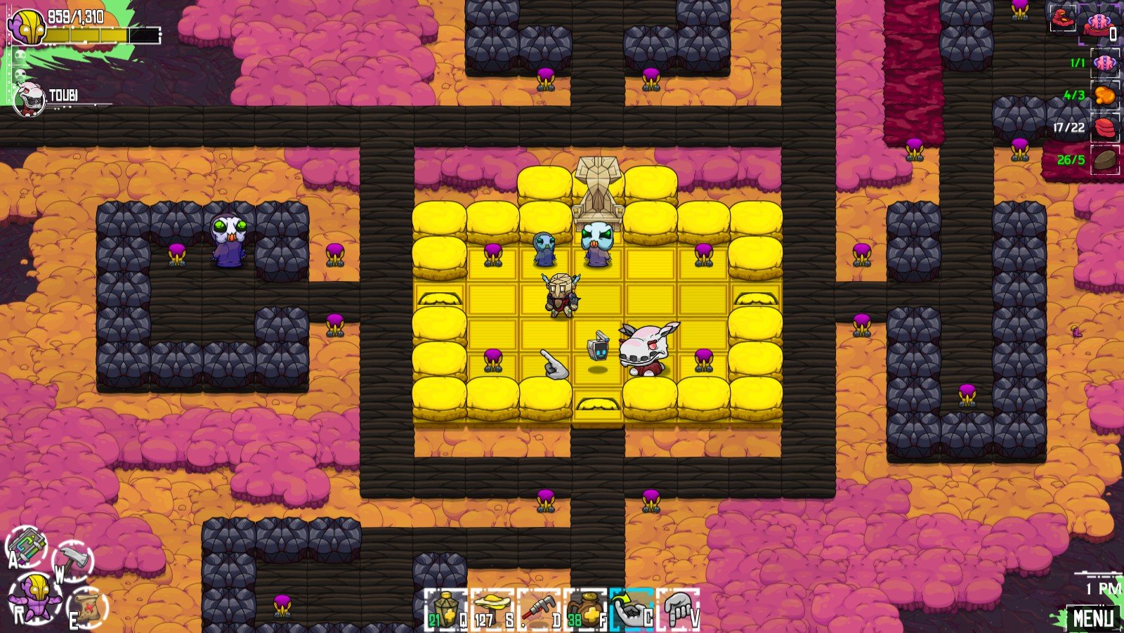 Au final, Crashlands est pour moi la superbe découverte de ce début d’année ! Des heures d’exploration, de découverte, de récolte, de chasse de bestioles, de craft, de construction, de farming et d’élevage le tout dans un jeu au gameplayOu « jouabilité » en français, fait référence à la façon dont le joueur interagit avec un jeu vidéo. fluide et très agréable, porté par une direction artistique fantastique et une bande-son qui ravira vos oreilles. Sérieusement, n’attendez-plus, Crashlands est addictif au possible et propose des heures de jeu à prix très abordable. J’y retourne !