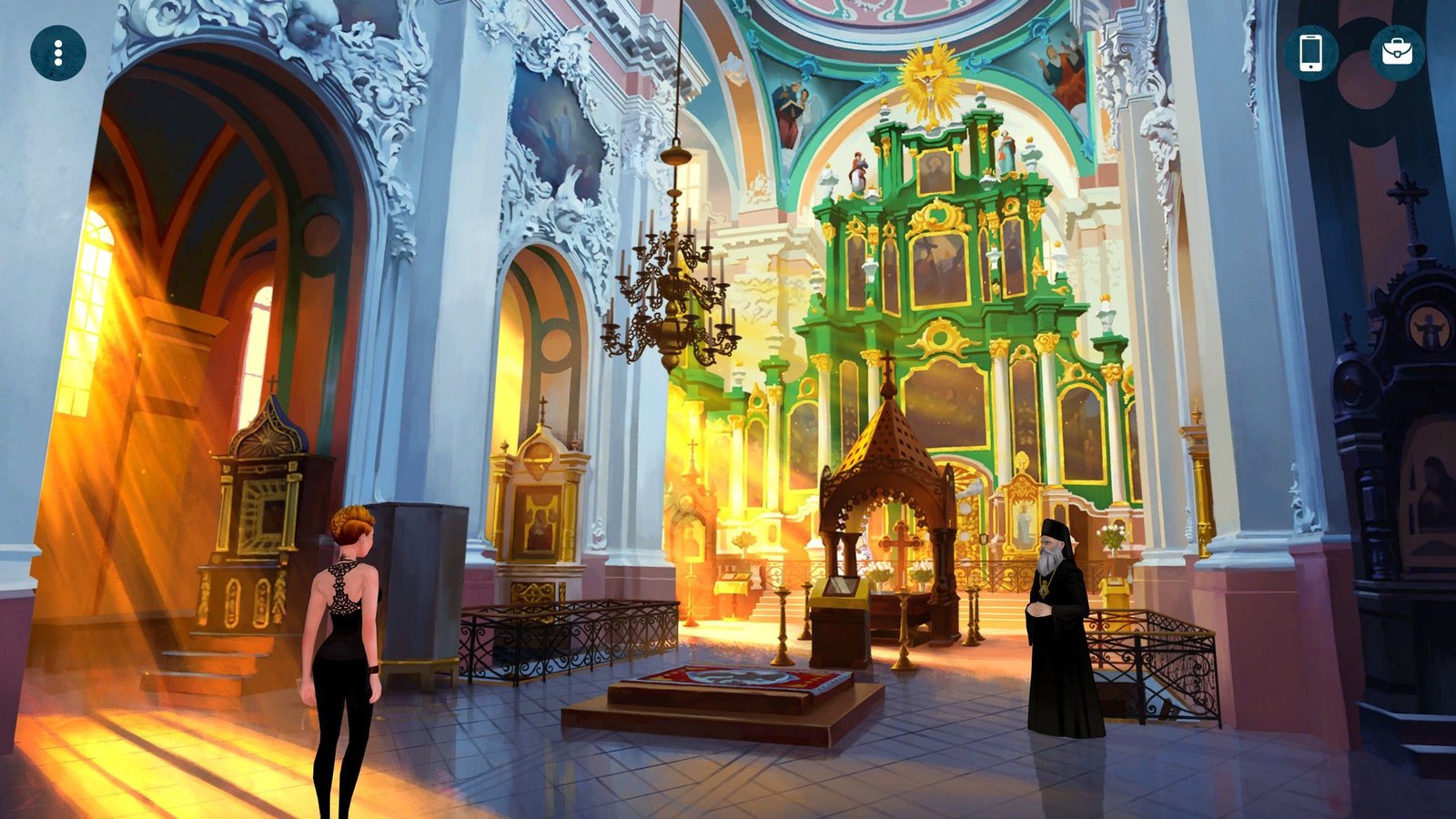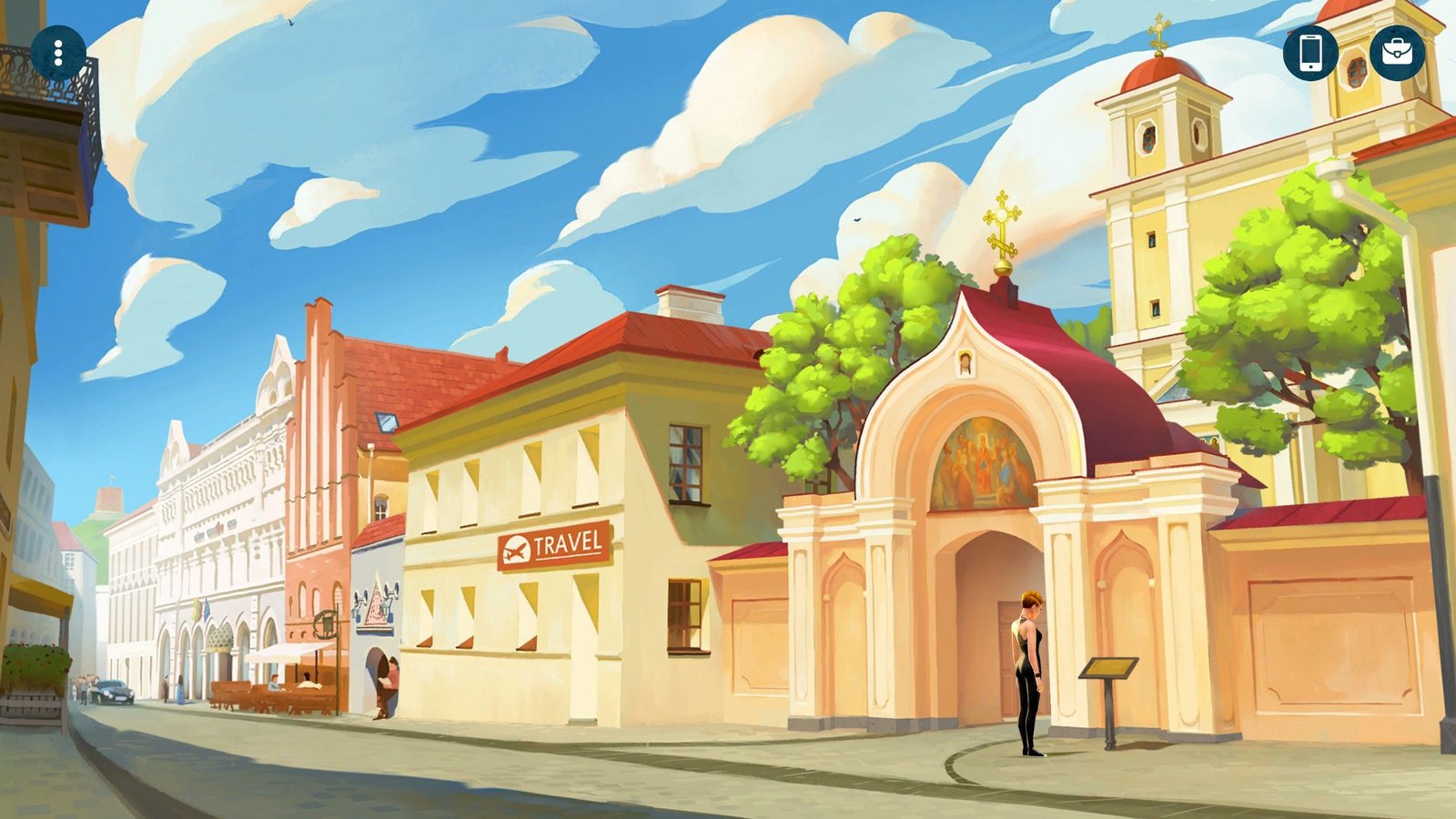 Là où un Broken Sword démarre sur les chapeaux de roues, Crowns and Pawns: Kingdom of Deceit débute de façon très posée, avec une ambiance calme plus proche de celle d’un jeu de gestion tycoon que d’une aventure épique, pas non plus aidé par ses musiques chills et en retrait. Mais on sera vite amené à voyager en Europe, et notamment en Lituanie où se passe la plus grande partie de l’aventure. On sera également amené à visiter d’autres pays comme le Belarusse ou l’Italie, non sans y croiser quelques petits stéréotypes. Il en reste que la sensation de se faire happer par le mystère au cœur du jeu, retrouver la Couronne d’un ancien souverain dont la rumeur voudrait qu’elle possède des vertus magiques, est bien présente à plusieurs moments de l’aventure. Néanmoins ces passages sont entrecoupés par d’autres moins intéressants, surtout basés sur les puzzles qui semblent parfois être là principalement pour du remplissage, et qui diluent un peu la sensation de course en avant que devrait être une telle chasse au trésor. On pense notamment à ce passage un peu WTF où l’on doit faire perdre une équipe nationale de hockey sur glace en utilisant une corne de brume pour inciter des chants de supporters…