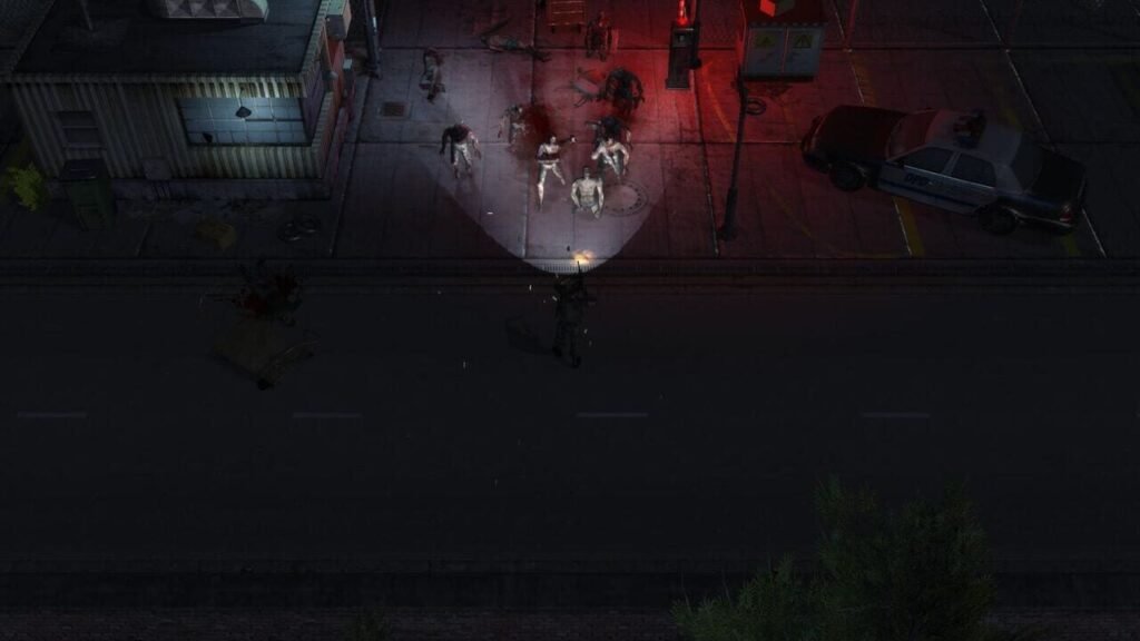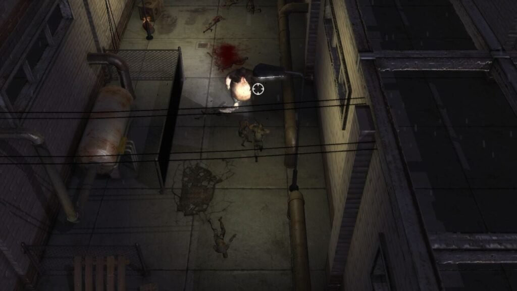 Un virus créé par les militaires a été déversé par mégarde dans la rivière locale. Les habitants d’une petite ville sont alors devenus de véritables zombies et devinez qui va devoir s’en débarrasser ? À travers une dizaine de très longs niveaux (un bon point) qui se répètent inlassablement (ah, dommage) , on bouge donc avec le sempiternel combo des touches ZQSD et l’on s’amuse à tirer et viser à la souris. Depuis Geometry Wars, ce gameplay a fait bien des petits… Une arme principale, des grenades et quelques armes secondaires très onéreuses sont à découvrir tout au long du jeu. Des cabanons de « vente et upgrade » d’armes sont disposés à certains endroits du jeu, permettant d’échanger l’argent récolté (en tuant les ennemis) contre une remise à niveau de l’équipement. On peut augmenter la cadence de tir, la puissance et le nombre de munitions. On peut y acheter aussi un ustensile permettant de ressusciter un allié décédé en cours de route. Classique et plutôt efficace, même si cela manque cruellement d’originalité.