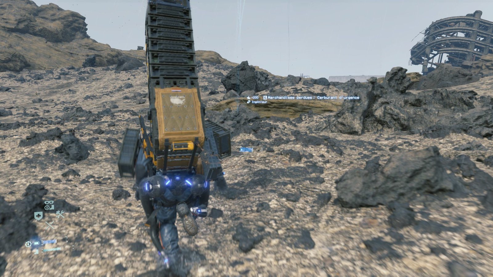 Le reste du gameplay à base d’affrontement se résume à frapper des drogués de la livraison appelés les MULES pour les empêcher de vous piller. Dans ce monde de Death Stranding, mourir c’est devenir un “fantôme”. Il faudra donc éviter de tuer vos assaillants sous peine de ne pas aller dans ce sens et alimenter le nombre d’ennemis qui vous guettent. Oui, je sais, c’est génial. Et ça commence fortement à m’ennuyer d’en dire du bien.