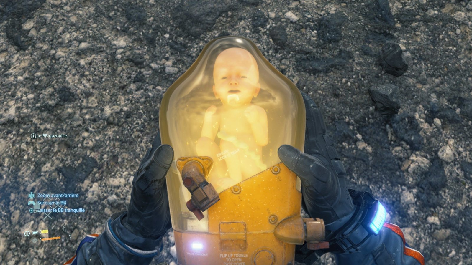 Et c’est là tout le génie d’une œuvre d’art : elle laissera indifférent bien des joueurs qui n’y trouveront pas leur compte. Au delà d’un scénario intense, vaste, plein de bêtises mais aussi de génie, de personnages passionnant (Heartman !), Deathstranding est vraiment un mélange généreux constitué à 90% de livraisons et de quêtes fedex qui pour la première fois dans un jeu vidéo se revendiquent comme telles et font partie intégrante du système. C’est de la folie pure.