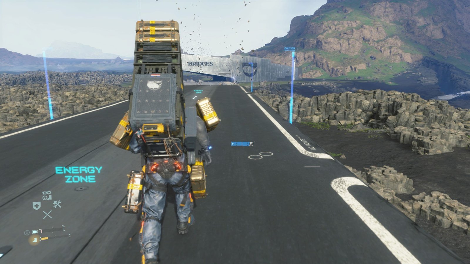 Manque de bol, ce n’est pas l’aspect multijoueur et partage qui viendra me faire dire du mal de la production du meilleur ami de Geoff “Doritos” Kheigley. Bien au contraire tant cela confirme et signe les qualités d’œuvre d’un DeathStranding marquant et totalement unique en son genre ; puisqu’il faut créer des ponts entre les gens et reconnecter les villes de l’Amérique, Hideo propose aux joueurs de créer ce qu’ils veulent dans ce monde pourtant de retour à la nature sauvage (bravo la pollution, vous n’apprendrez jamais). Des caisses de stockage, des générateurs pour recharger vos batteries, des abris pour se reposer mais aussi… Des ponts et de routes pour simplifier le voyage. La boucle est bouclée.