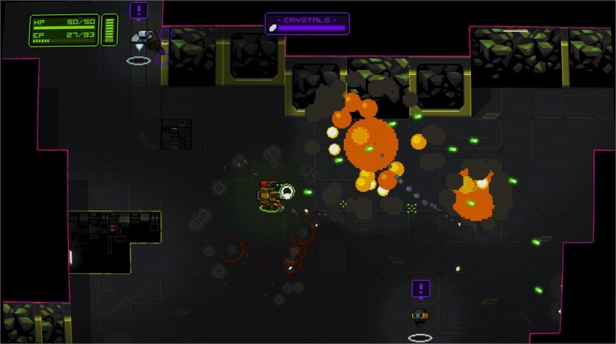 En alpha / beta depuis le mois de septembre 2015, le jeu a énormément évolué depuis que nous avons rencontré les deux développeurs lors de l’Indie Games Play n°5 ( reportage ici dès la première minute ). Neurovoider est toujours aussi nerveux, même s’il manque encore un peu de retour quant aux impacts des diverses bullets , mais permet maintenant de choisir la classe de son robot en début de partie , ainsi que sa zone de combat, chacune ayant une taille, une difficulté et un taux de loot différent.