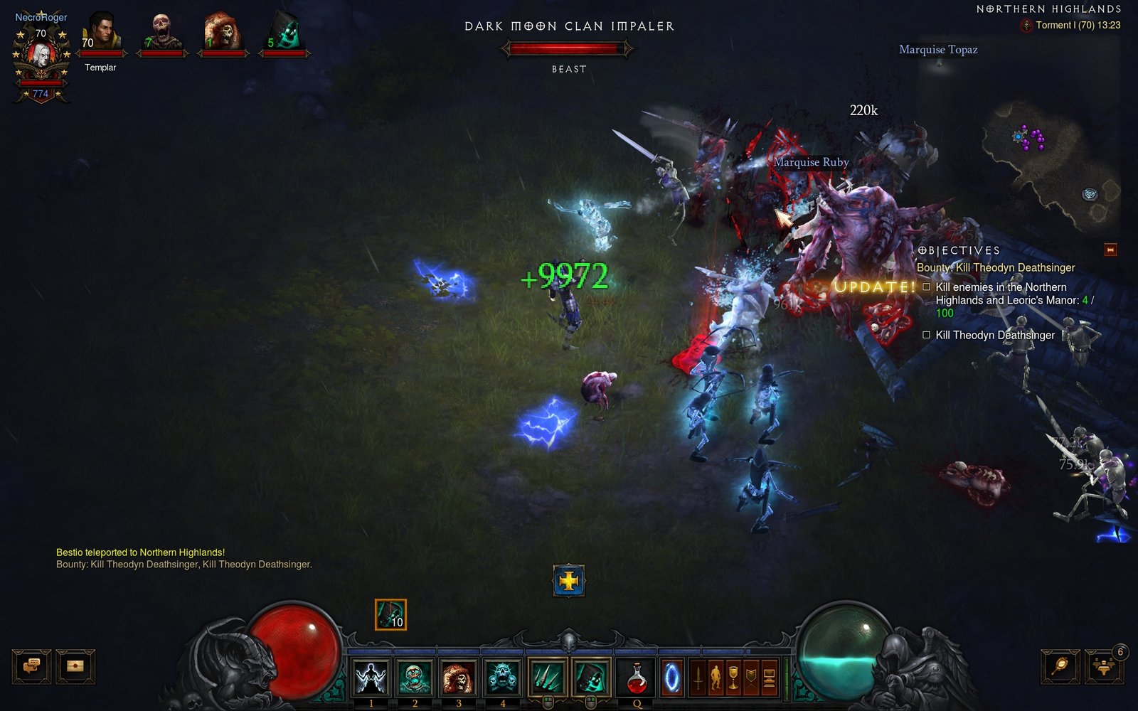 Ce qui est intéressant, c’est que les différentes runes ( cinq variantes par sort ) de tous ces pouvoirs couplées aux compétences passives permettent de jouer le Nécromancien aussi bien en support, qu’en invocation ou qu’en dps solo . Le personnage est suffisamment bien pensé pour varier les plaisirs et s’adapter au style de jeu de chacun .