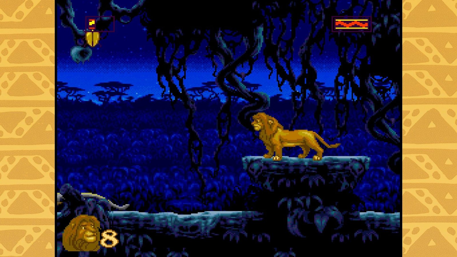Quelques petites améliorations de confort sont tou de même disponibles dans les deux jeux. Tout d’abord une fonction « retour arrière » qui permet de rembobiner le jeu de quelques secondes en arrière afin de refaire un saut raté ou un combat relou dans lequel on aurait pris trop de dégâts par exemple, oubliez juste de l’utiliser pendant le combat contre Scar à la fin du Roi Lion, il dure facilement 10 minutes. De même, il est possible de sauvegarder sa position, mais il n’y a qu’un slot de sauvegarde disponible, soyez prévenus ! Pour finir, certaines versions du jeu proposent une vidéo superplay, qu’il est possible d’arrêter à tout moment pour sauter directement dans l’action.