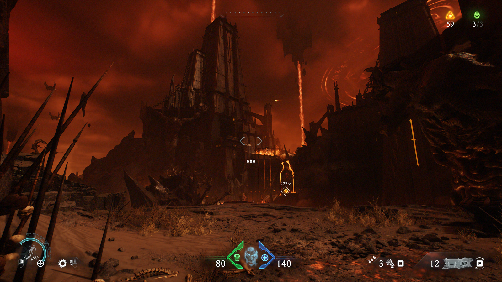 Donc, l’histoire n’est pas bien, la musique, c’est bof, le game design manque cruellement d’épaisseur, j’y ai quand même passé une vingtaine d’heures (surtout parce que je passais trop de temps à chercher des secrets sur les différentes map alors que globalement : ça ne sert à rien), il doit y avoir quelque chose à sauver ? Eh bien, je ne saurai vous dire. Je ne pense pas que ce DOOM soit un mauvais jeu, mais la série m’aillant toujours habitué à mieux, j’ai, sans le vouloir, mit mes standard trop haut, notamment si j’en juge les critiques et la presse, plutôt clémente avec lui. C’est quand même un très joli jeu, c’est presque magique de le voir tourner sur mon PC dans d’excellentes conditions. Il y a des moments de mise en scène assez impressionnante et il a su parfaitement satisfaire mon besoin de gigantisme, avec certains panoramas terrifiant, où on se sent absolument minuscule. Je pense honnêtement être resté spécifiquement pour ça et rien de plus (pas même les phases de GROROBO et de dragon, répétitive dès leur 2ᵉ utilisation).