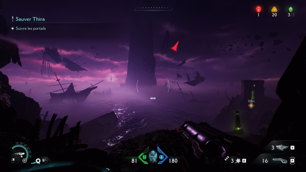 C’était bien ma plus grande interrogation depuis sa première annonce et après un trailer qui m’a un peu saucé avec sa direction dark medieval et cette fantastique mitraillette à crâne. Le contexte aurait pu amener pleins de choses un peu nouvelles. Un peu de Painkiller ? un peu de Hexen peut-être ? Hein, mais, comment ça encore un scénario ? Mais déjà dans Eternal, on trouvait ça bof ! Alors, je comprends l’idée de rajouter un peu de mythologie à l’univers, avec quelque chose qui a l’air de se passer dans un moment intemporelle. On ne comprend pas trop si on se situe avant ou après les derniers épisodes, lui donnant un peu plus cette aura d’une Odyssée (sauf qu’on tue des démons). Mais du coup, on se retrouve bombardé de cinématiques très jolies, mais insipide au possible et avec une demoiselle en détresse. Bravo, vous êtes rentré dans le cliché exact que vous avez esquivé pendant 32 ans (bon dieu, je suis aussi vieux que DOOM).