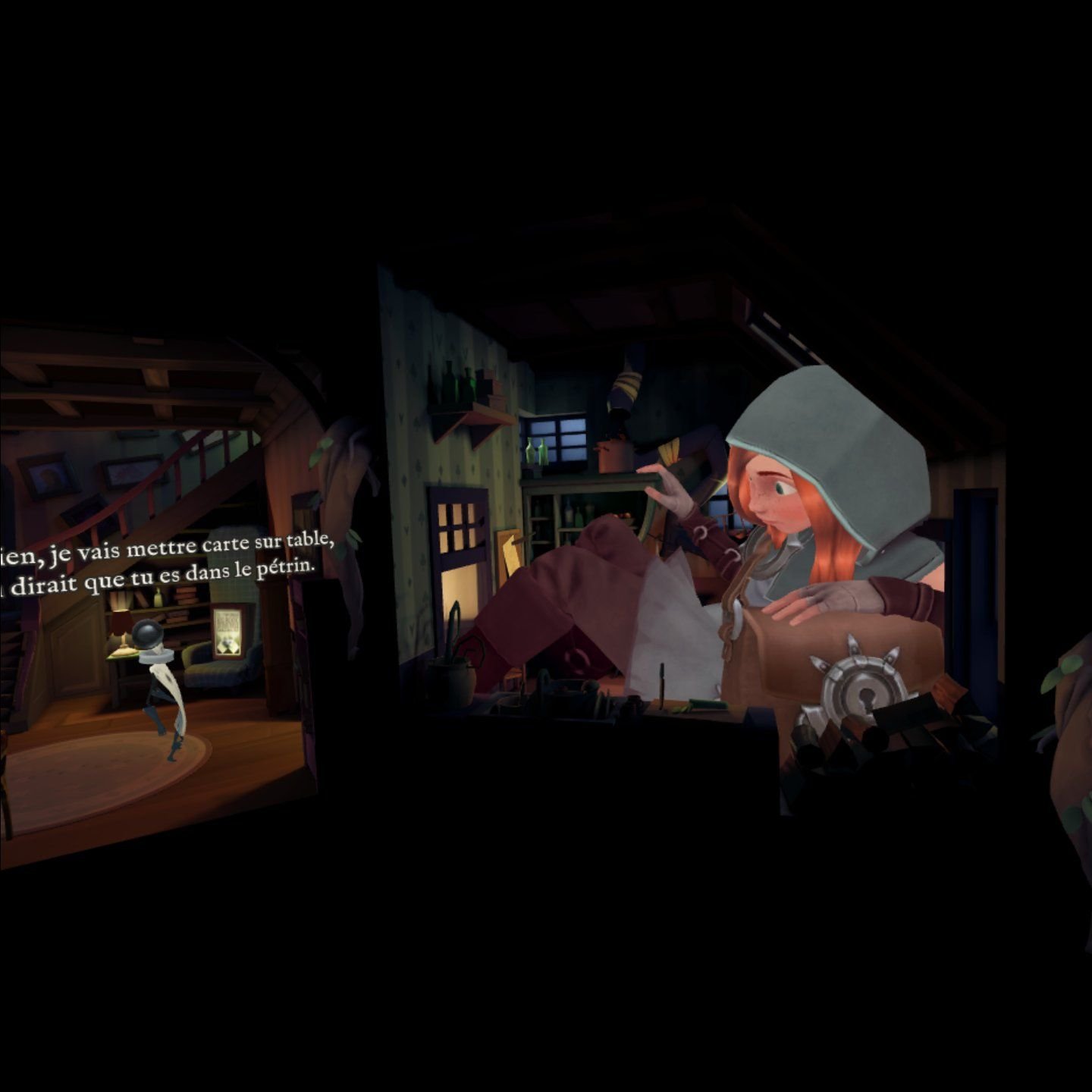 Il faut voir ce niveau sans dessus-dessous ou ces énigmes entre deux mondes reliés par de simples reflets dans l’eau pour se rendre compte des instants magiques que parvient à proposer ce titre qui parvient au final à proposer un joli conte interactif. Surtout, nous n’y jouons pas seulement cette jeune fille mais aussi un autre personnage bien plus original, au récit sympathique à défaut de captiver jusqu’à émouvoir. Tout juste est il un bon personnage secondaire pour ce récit simple mais efficace. Reste que son utilisation alternée avec notre héroïne, au bon vouloir du joueur la plupart du temps, mettra en avant le meilleur niveau à énigmes du jeu. Énigmes par ailleurs assez simple pour un jeu d’aventure quelconque, mais qui prennent davantage d’ampleur en VR.