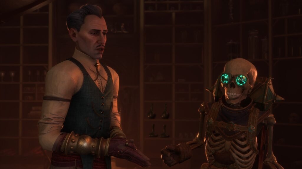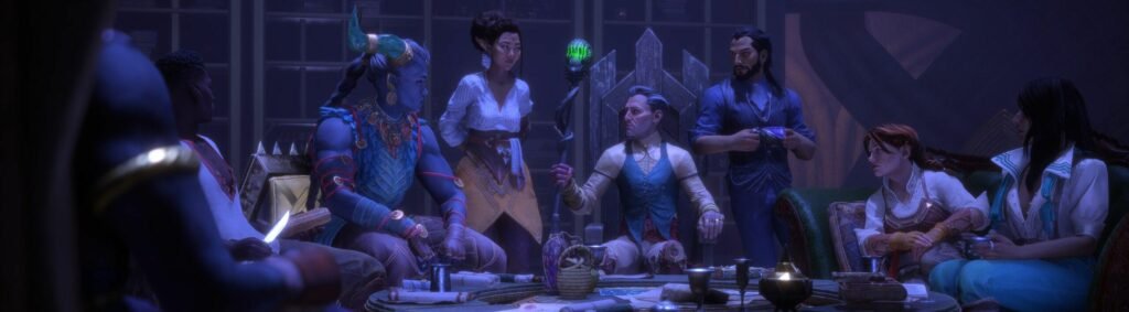 Soudain, The Veilguard arrive avec ces gros sabots au travers de l’histoire du personnage de Solas, lequel on a appris par le biais de The Trespasser (l’épilogue payant de DA:I) qu’il était le Dieu Elfique de la Tromperie (rien que ça). L’intrigue commence par la chasse de ce dernier, qui veut détruire le Voile de l’Immatériel pour libérer les anciens dieux Elfes. Mais il se trouve que le passé de Solas sera l’un des fils rouges de l’histoire, occasionnant beaucoup de remises en questions sur l’univers dépeint au travers du Créateur. Je n’en dis pas plus, mais si Veilguard possède une histoire principale de combat contre les dieux (comme toutes les histoires de AAA depuis God Of War), je suis absolument fasciné par la manière dont il amène les choses. Régulièrement, les personnages se réuniront autour d’une table pour parler des évènements, amenant des débats politiques et théologiques.