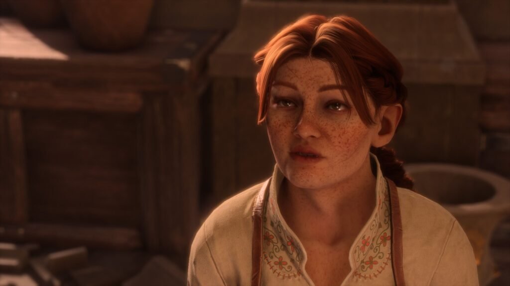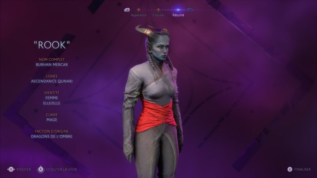 La création de personnage, en plus d’être l’une des plus complètes du genre (avec Dragon’s Dogma 2), permet de définir la race (quatre disponibles), le pronom, le genre et ainsi que le corps parmi une ribambelle de propositions, accompagnées de son lot de curseur (on a même le droit à des cicatrices de chirurgie de la poitrine) ! Bref, tout est là pour créer votre Rook (un nom passe-partout, c’est pratique quand tous les dialogues sont doublés et localisés). Mais votre personnage ne va pas juste être défini par quelques curseurs, au fur et à mesure de l’aventure, vous aurez des propositions qui vont établir son caractère, ses idées, mais aussi son identité de genre. Ceci pourra donner lieu à des dialogues particuliers, avec vous-même comme avec vos compagnons. L’identité de genre est maintenant un concept intégré et présent au sein même de l’univers. Elle va apporter une couche de plus sur la construction de votre personnage (si vous le souhaitez) mais aussi de certains de vos camarades, ceci pourra prendre une place (parmi plein d’autres sujets) dans les dialogues.
