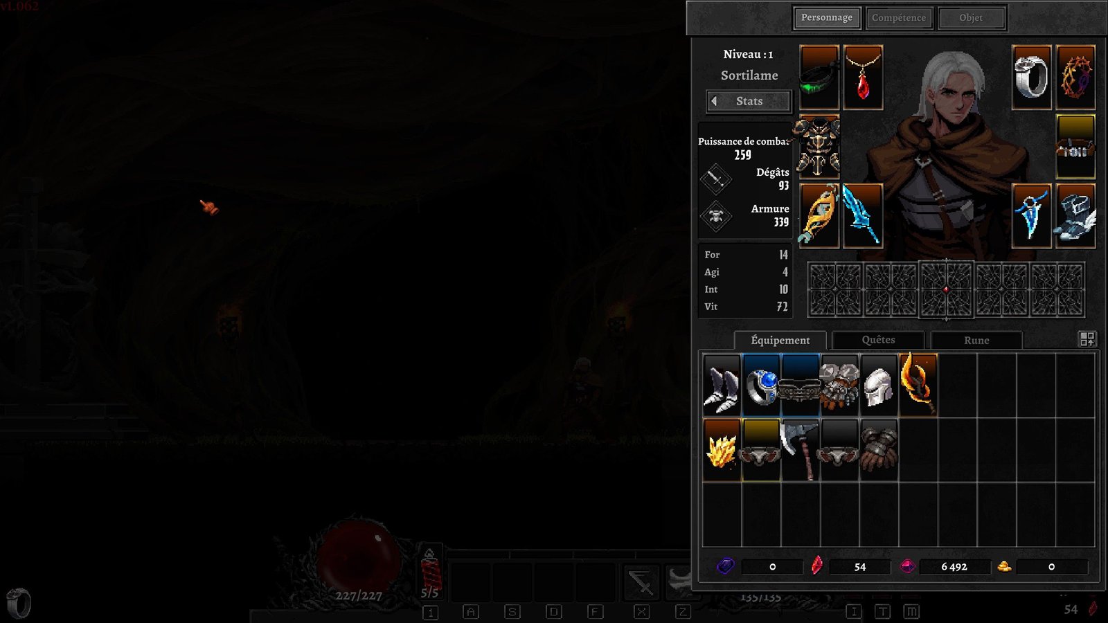 Le gros problème du jeu est que le studio à retirer l’essence du rogue et celle du hack and slash. Etant donné que vous ne perdez pas votre équipement (hors artefact, qui ont grosso modo les effets que peut apporter un set d’arme lorsque vous portez plusieurs pièces de celle-ci), vous devez très rapidement trop fort pour les premiers niveaux, quand je dis trop rapidement, c’est dès le second ou troisième run. On se retrouve à parcourir des niveaux sur lesquels on a besoin de n’utiliser que son attaque principale. D’autant plus qu’une run complète est très longue. Passé une heure trente à rouler sur tout le jeu pour finalement se faire rouler par le boss de fin et ses patternsDésigne une séquence d'actions ou de mouvements qui se répète. Ex : attaque ou combo ennemi, une série d'événements... pas très lisibles, ce n’est pas exactement ce que l’on recherche dans un rogue. Il est primordial de garder du challenge dès les premiers niveaux. Du côté du hack and slash, le manque de monstre, et la verticalité n’aide pas à réussir à avoir cette explosion de vidage de zone (même si sur la fin, il y a beaucoup de monstre par salle, ils apparaissent par vague).