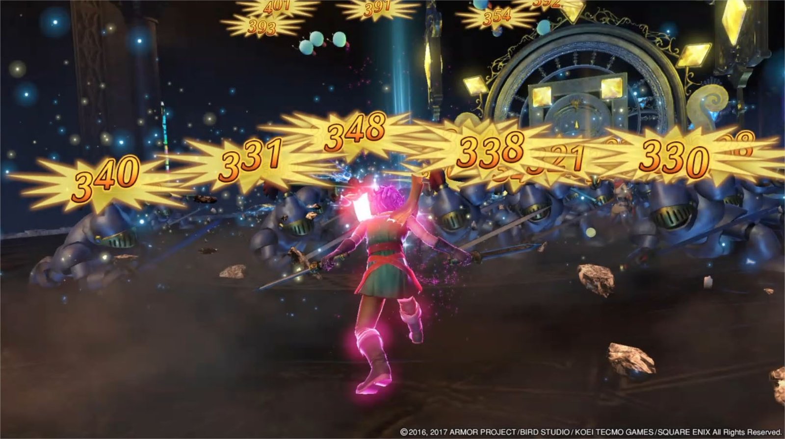 L’histoire est assez quelconque et téléphonée : se servant de l’excuse de failles dimensionnelles pour faire apparaître plusieurs personnages des nombreux Dragon Quest sortis depuis 1986, le jeu va enchaîner les aller-retours entre contrées pour détruire du monstre et gagner de l’expérience. Les premières heures sont tout à fait charmantes : on découvre le moteur des Musou appliqué à un monde libre visuellement magnifique (bien qu’assez vide). Le style d’Akira Toriyama fait toujours aussi mouche malgré ses détracteurs et on se sent bien, dans cet univers.