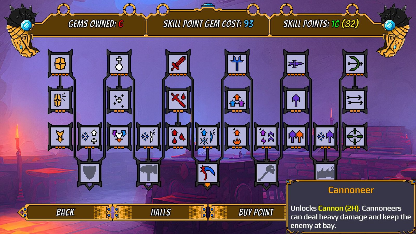 Car je ne l’ai pas dit, mais si vous perdez un combat la partie s’arrête et vous devez recommencer à zéro (tout en bénéficiant des lieux et fonctionnalités précédemment débloqués). Tous les 10 combats vous affronterez un groupe plus coriace et en cas de victoire vous obtiendrez non seulement un bon butin, mais surtout les fameuses gemmes à dépenser dans l’arbre ainsi qu’une relique à choisir parmi trois à donner à un de vos nains. Les pouvoirs sont vraiment intéressants comme le fait de revenir à la vie, obtenir des résistances élémentaires, plus de pièces d’or, etc.