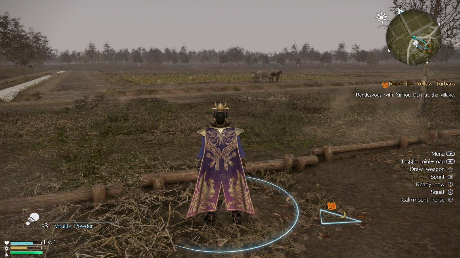 Le monde libre est effectivement présent : on parcourt la Chine plate et terne, grisâtre et aliasée à l’extrême pour qui n’a pas de Xbox One X ou de PS4 Pro. Le framerate est horrible de saccades, histoire de peaufiner l’expérience. On se retrouve donc à pied ou à cheval dans une énorme carte ou il est possible de ramasser du craft à même le sol (il suffit de passer dessus pour collecter bois, pierre, herbes en tout genre) . Entre deux visites de plaine moche, on se bat contre de petites troupes d’ennemis.