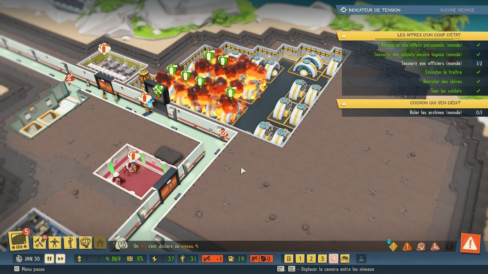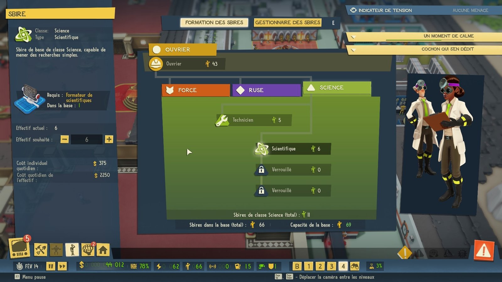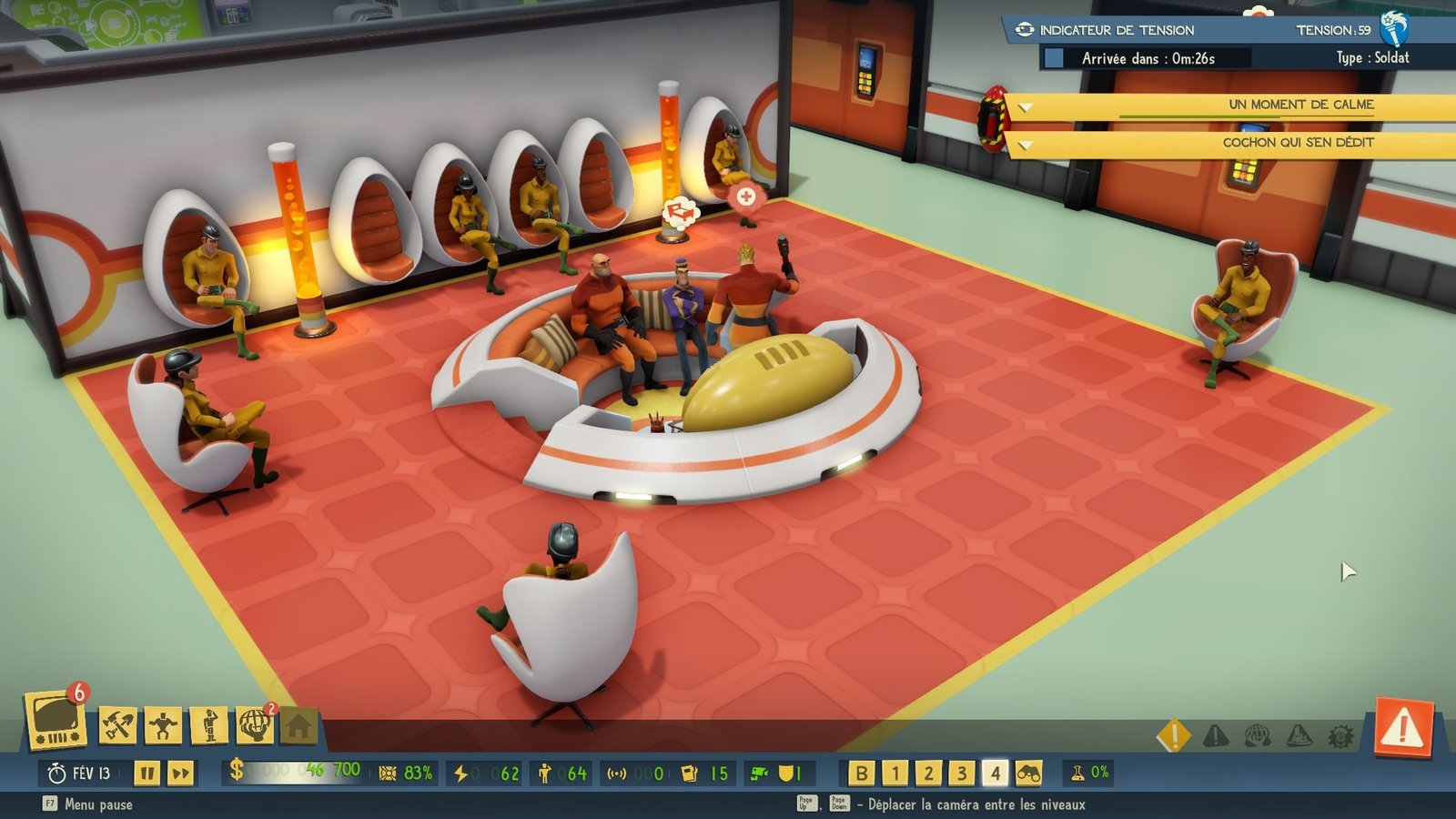 J’ai donc un constat plutôt salé sur Evil Genius 2. C’est un de ces rares jeux que j’aimerais aimer mais qui ne m’aime pas du tout. Il est déséquilibré et complexe simplement pour faire durer le jeu artificiellement. Heureusement, il corrige beaucoup de défauts du premier, et nul doute que les fans de la première heure seront aux anges d’y jouer dans ces conditions, mais toute la boucle de gameplayOu « jouabilité » en français, fait référence à la façon dont le joueur interagit avec un jeu vidéo. est très répétitive alors qu’on aimerait juste construire notre base de vilain tranquillement, en admirant ses sols brillants et lustrés, ses salles en Formica et ses animations soignées.