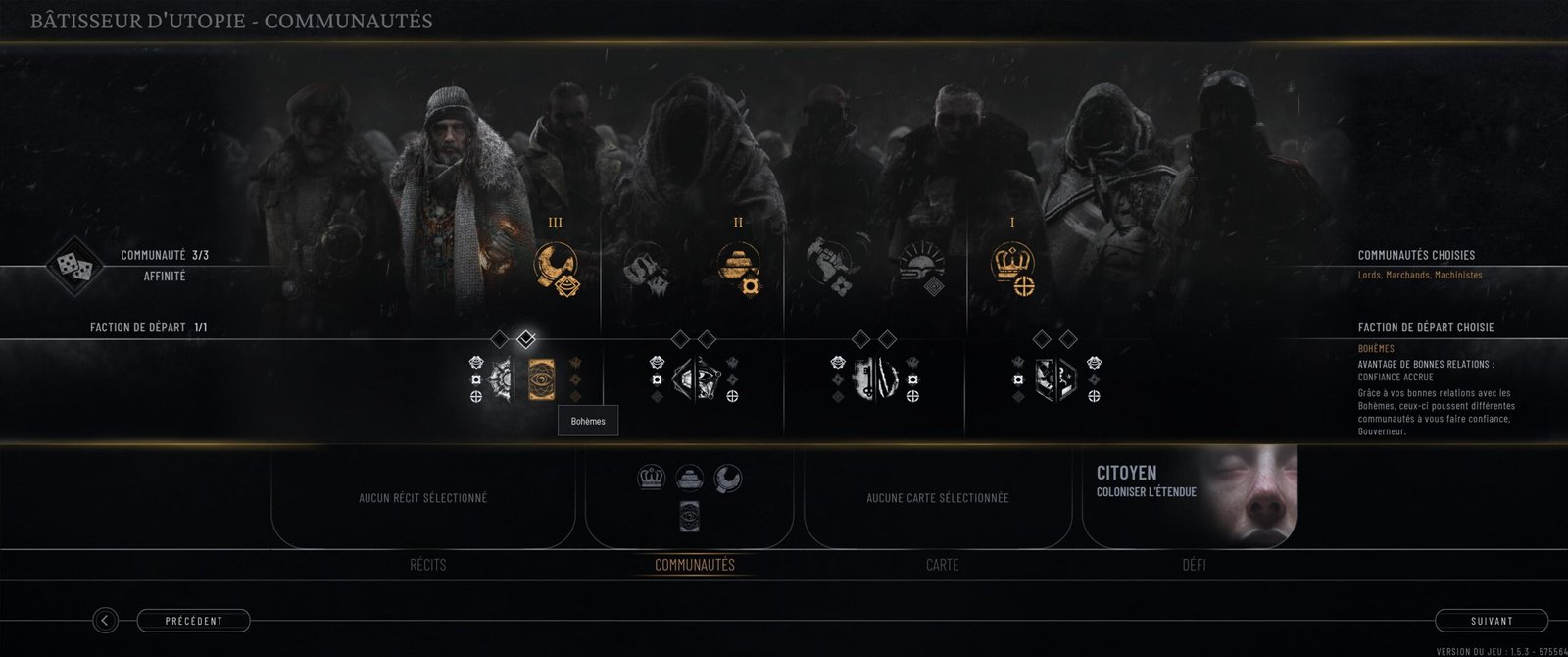 Comme dit plus haut, Fractured Utopia est avant tout là pour permettre aux différentes factions présentes dans le jeu d’avoir une « utopie ». Dans les faits, elles ont chacune un arbre de technologie, qui va pouvoir évoluer en fonction des doléances que vous leur accordez. Les nœuds feront juste en sorte d’accorder toujours plus de présence, de pouvoir, mais aussi de bonus, à votre ville. Toutes ces factions auront aussi un bâtiment propriétaire, qui visera à souvent améliorer la production ou l’efficacité de vos différents districts en fonction de la nature de leurs buts (technologie, expansion, progrès, résidence, productivité, etc.). Une idée plutôt cohérente avec le nouveau fonctionnement des guildes dans cet opus, malheureusement très mal équilibrée, rendant certaines factions bien plus avantageuses que d’autres (typiquement ceux qui apportent de la nourriture ou redorent la confiance du peuple). Pire encore, le fait de devoir choisir une guilde précise fait que, factuellement, les autres vont vous détester, ce qui invalide complètement le gameplayOu « jouabilité » en français, fait référence à la façon dont le joueur interagit avec un jeu vidéo. original, à base de concession.
