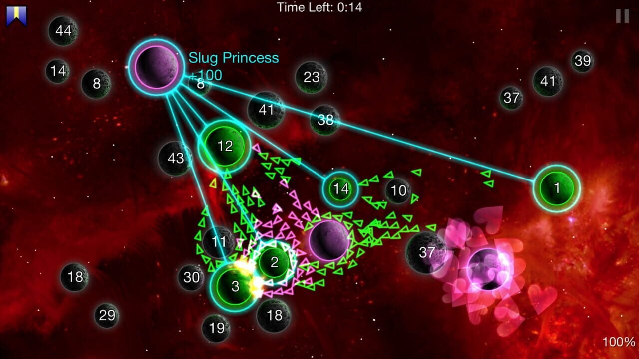 Un peu comme dans le jeu de plateau Risk, vous déplacez vos unités vers les différentes planètes pour les attaquer et vous les approprier. Une fois sous le contrôle d’un joueur (elles sont au départ pour la plupart neutres) , elles commencent à produire des vaisseaux de combat, augmentant ainsi petit à petit la puissance militaire de son dirigeant. Plus la planète est grosse, plus cette production est rapide… et plus la lutte pour son contrôle risque d’être acharnée.