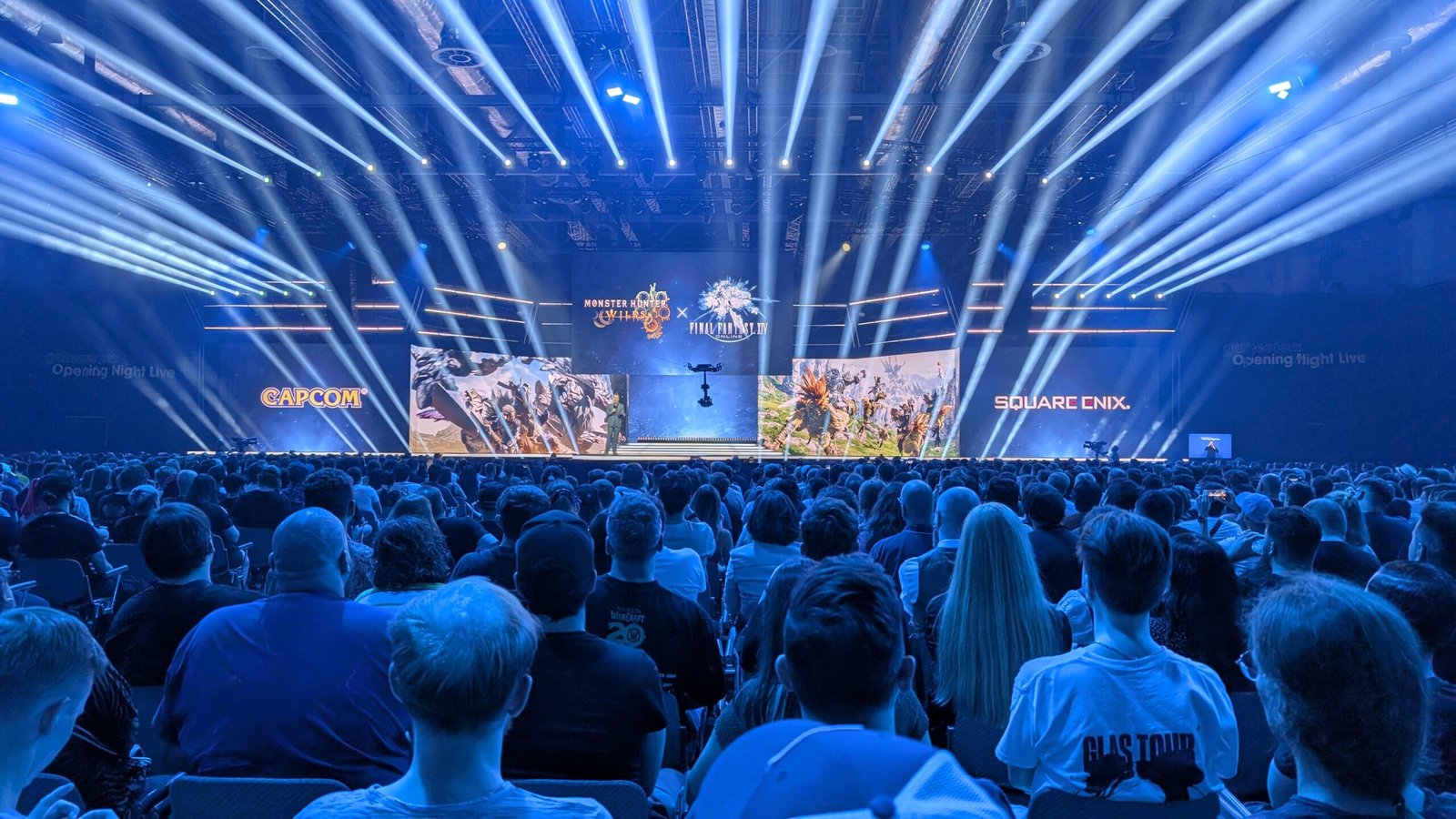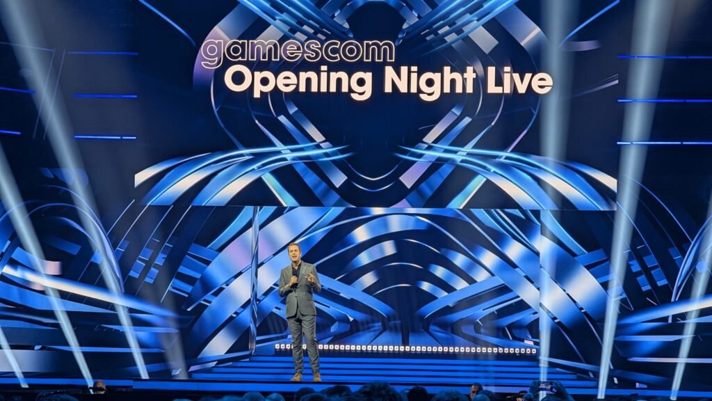 On n’a plus souvent l’occasion de faire la Gamescom sur GSS, déjà parce que ça coute cher d’y aller (surtout en partant de Montpellier pour ma part), mais surtout parce qu’on a tous un travail à côté. C’est compliqué pour beaucoup de se dire qu’on prend une semaine de congés pour faire quelque chose de très physique (donc pas vraiment des vacances). Cette année (et grâce à Skywilly, que je remercie énormément), j’ai voulu faire mes 9h de train pour partir à Cologne, capitale européenne du jeu vidéo, l’espace d’une semaine. Cet article va se composer comme un journal de bord, où je vous raconterais les trois journées passées au Koelnmesse en détaillant les jeux que j’ai vus et un avis un peu plus à froid (vu que je l’écris une semaine plus tard). Certains jeux un peu gros auront le droit à leurs articles dédiés, présent en page d’accueil mais aussi avec une redirection depuis cet article. Mais avant toute chose, on est le 19/08 il est 19h et avec Skywilly, on a des hot dogs et de l’eau gazeuse, on peut regarder Geoff Keighley en costard pour nous parler de tous les trucs qu’il aime.