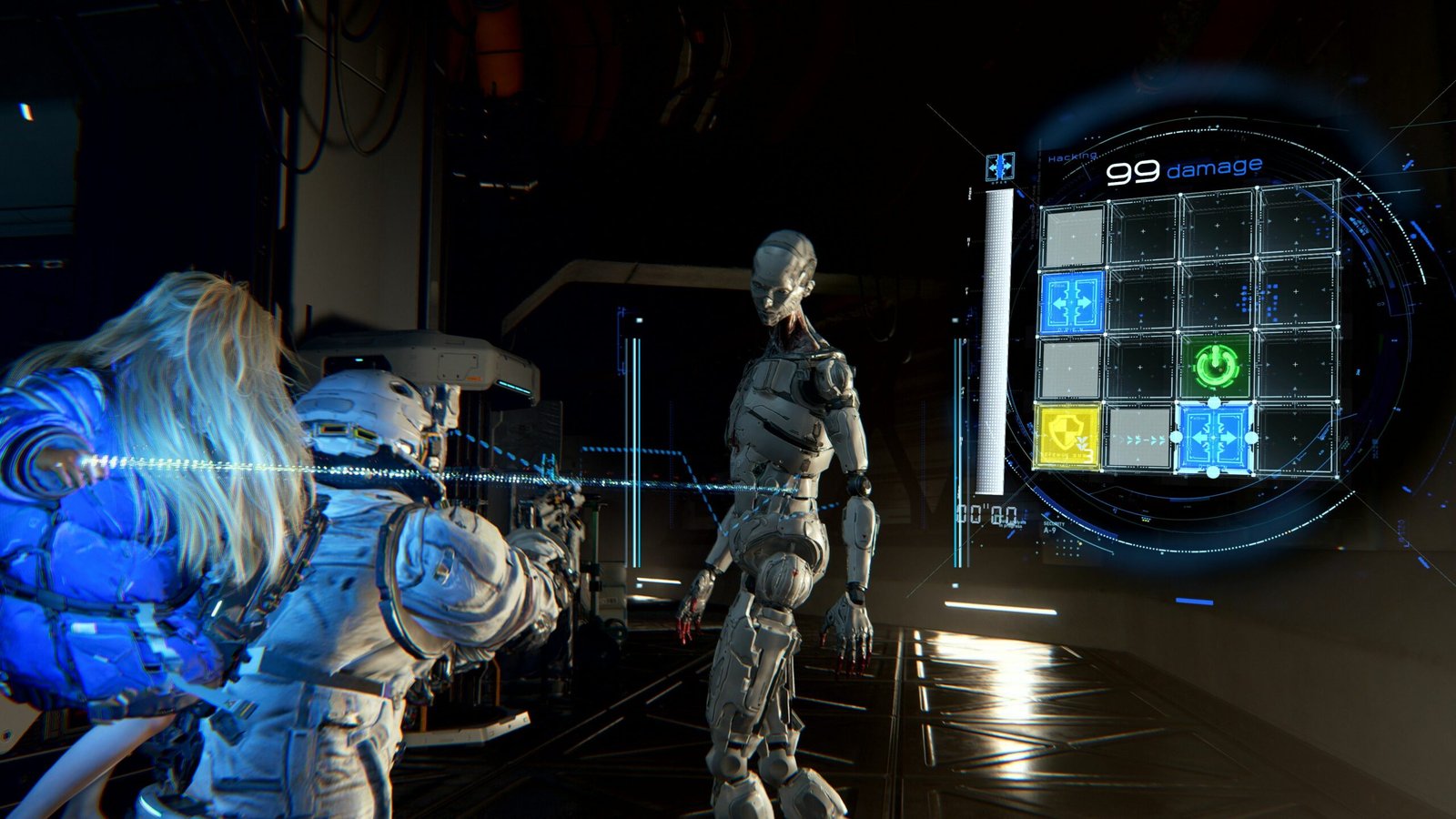 Ceci se fait via la pression d’une touche et fera apparaitre une grille sur laquelle voudrez utiliser les touches de la manette pour faire passer un curseur au bon endroit. Sans ça, vos ennemis seront tout particulièrement résistants, il est donc absolument nécessaire de le faire. L’idée est bonne, mais dans les 15 minutes de sessions, la boucle de combat était déjà routinière (hacking, on dérouille la tête du robot et on passe à l’ennemi/le couloir suivant). Même le boss ne rajoute pas vraiment de sauce en plus à cette maigre recette. Pour tout ce qui concerne le reste, l’exploration semble plutôt pauvre et les quelques énigmes manquaient de challenge. Malgré un RE Engine toujours au top visuellement, la direction artistique générale me paraissait bien trop léché avec ses robots et ses bip-boup de l’espace lunaire, immaculé d’un blanc très convenue quand on est sur la Lune. Il faudra clairement que Capcom sorte en dehors des sentiers définis par cette version présentée s’il souhaite que cette licence dépasse la démo technique.