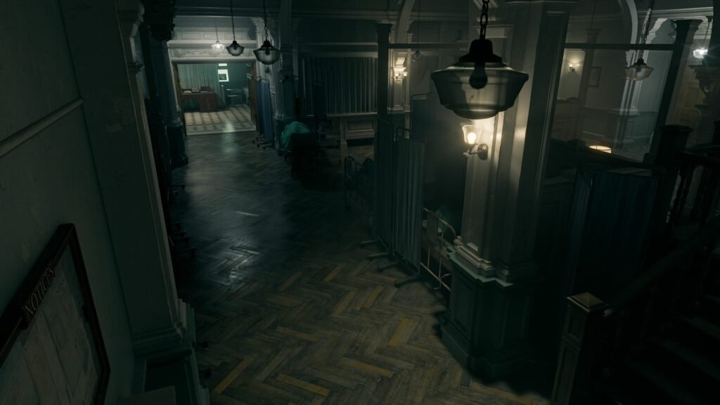 Dernière session sur le stand avec le neuvième épisode canonique de Resident Evil. Sous-titré Requiem, celui-ci m’avait beaucoup surpris avec son trailer lors de l’ONL, qui donnait une vibe « Slasher », avec cet ennemi qui chasse et sort de l’ombre pour capturer Grace Ashcroft, le personnage principal. Cette session de jeu se passe justement après cet enlèvement et nous voilà dans ce qui semble être un hôtel, attaché à un brancard, la tête à l’envers et un cathéter qui pompe notre sang. On se libère et on erre dans des couloirs. À ce moment-là, j’ai forcément eu Resident Evil 7 en tête et les longs moments angoissant dans le manoir, avec une menace qui peut surgir derrière chaque porte. Un parallèle qu’on peut faire aussi avec le premier épisode, de quoi probablement nous rappeler que cet épisode sera un bon retour aux racines. Surtout que Grace est une analyste pour le FBI, elle ne sait pas se servir d’un flingue ou d’une arme blanche. Elle ne peut que ramasser les items nécessaires aux différents puzzles bloquants ou des bouteilles vide à jeter pour faire diversion.