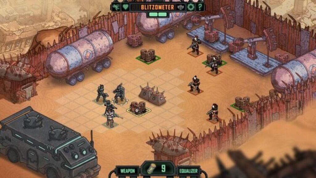 Le système de combat est assez similaire à Xcom , avec la nécessité d’utiliser au mieux les trois aspects suivants : les capacités de vos combattants, vos ressources et ce que peut vous apporter l’environnement. Les affrontements sont aussi l’occasion d’admirer le style visuel très tranché de Bedlam. Mon intuition me fit immédiatement penser à du Geof Darrow.
