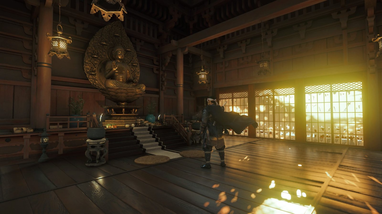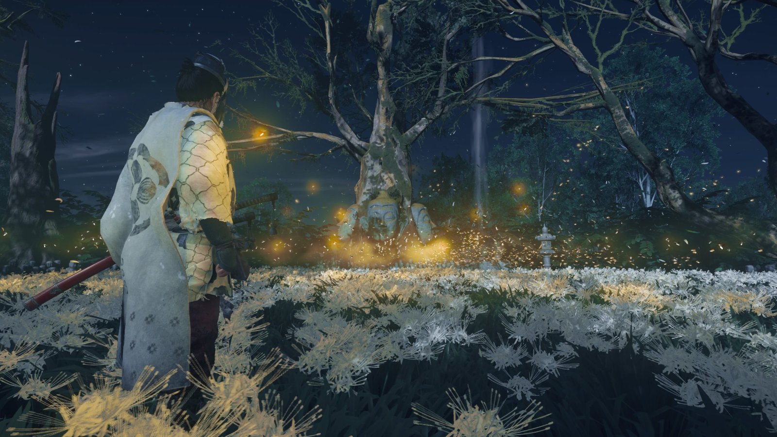 Il ne serait pas rendre justice à Ghost of Tsushima que de se focaliser sur ses absences de discernement en matière de game designProcessus de création et de mise au point des règles et autres éléments constitutifs d'un jeu tant elles font pâle figure avec tout ce qu’il réussit. Il est vrai qu’il ne s’agit en définitive que d’un jeu en monde ouvert comme un autre, avec ses étendues de paysages à en perdre la tête et un remplissage, sans doute moins imposant que chez d’autres, d’activités parfois redondantes. Entre les choses à collecter pour améliorer équipement et compétences de Jin, ou celles servant uniquement à l’habiller avec un certain style, le jeu n’est pas avare dans son remplissage qui ne se singularise que par l’utilisation intelligente de points de culture propre au Japon, comme la présence de onsen , ou source d’eau chaude, dans lesquelles Jin pourra méditer sur un sujet de son choix nous permettant d’explorer ses pensées tout en augmentant sa barre de vie.