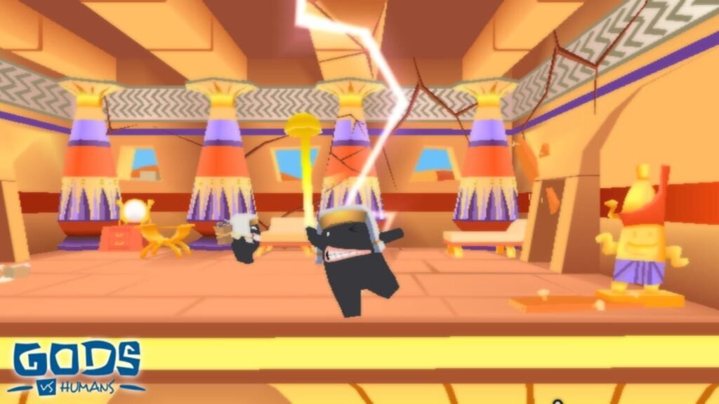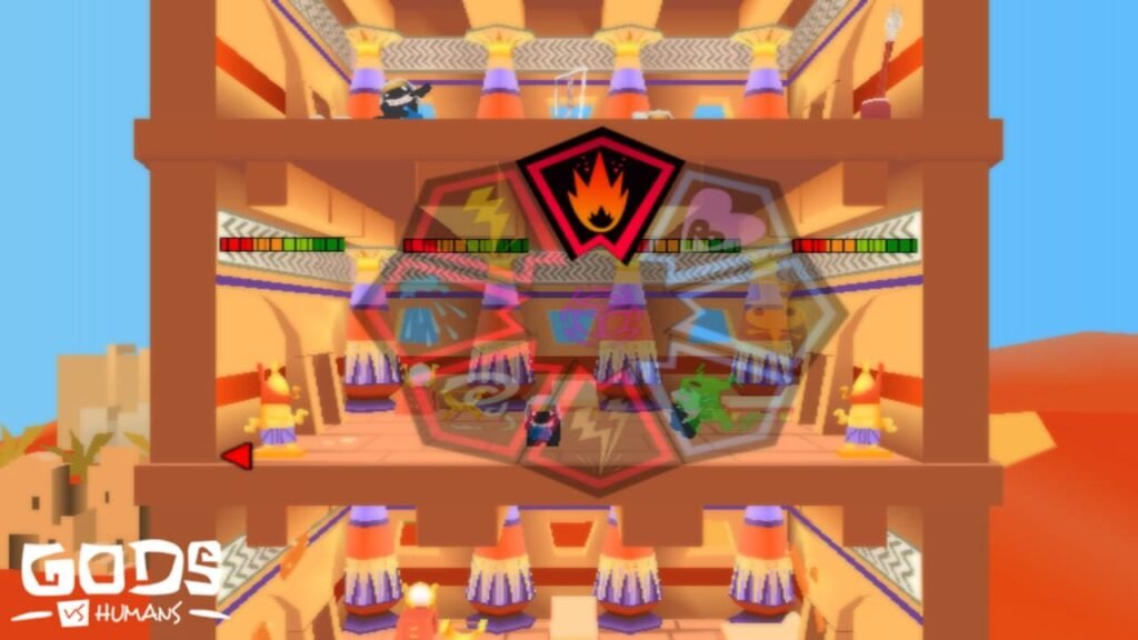 Zallag et Artefact Studios nous proposent un jeu tout public sur Nintendo Wii et PC. Gods Vs. Humans prend place dans un univers très coloré, ou les humains sont représentés par de petites créatures noires aux larges yeux et sourires alors que le joueur prend le contrôle d’un dieu mythologique aux pouvoirs divers et variés. Des divinités à la pelle Tout d’abord Égyptien dans la partie en solitaire, proposant plus d’une cinquantaine de niveaux, le dieu du joueur sera aussi Nordique, gréco-romain ou bien encore Japonais histoire de varier les décors et les plaisirs. Le concept du jeu est très simple, bien que mis en place à travers un tutorial pas toujours très clair. À l’écran est disposée une haute tour de plusieurs étages, construite par les humains pour se mesurer à leur dieu. Le but du joueur est alors de détruire cette tour pour leur montrer qui commande et ce qu’il en coute de se prendre pour plus supérieur qu’on ne l’est. Pour se faire, le joueur dispose de tout un panel de pouvoirs pouvant être lancés à travers les différents étages de la bâtisse.