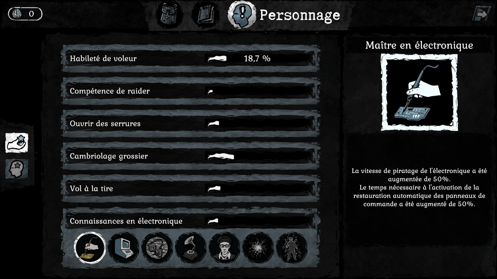 Si on ajoute à cela la fragilité des instruments de cambriolage (une barre à mine qui casse après 5 ouvertures forcées de pauvres fenêtres en bois pourri, c’est pire que dans BOTW), un système de perks qui n’a aucun effet compréhensible (la faute à la traduction pourrie), un mode pause active relativement inutile, des attributions de points de compétences nébuleux et une traduction aux fraises, on se retrouve avec un jeu qui voulait faire trop, trop bien, mais qui se retrouve écrasé sous son propre poids. En plus d’être très moche (oui, je sais on ne critique pas les graphismes, mais bon là quand même c’est du basique de chez Basique™ gris et terne de 2005).
