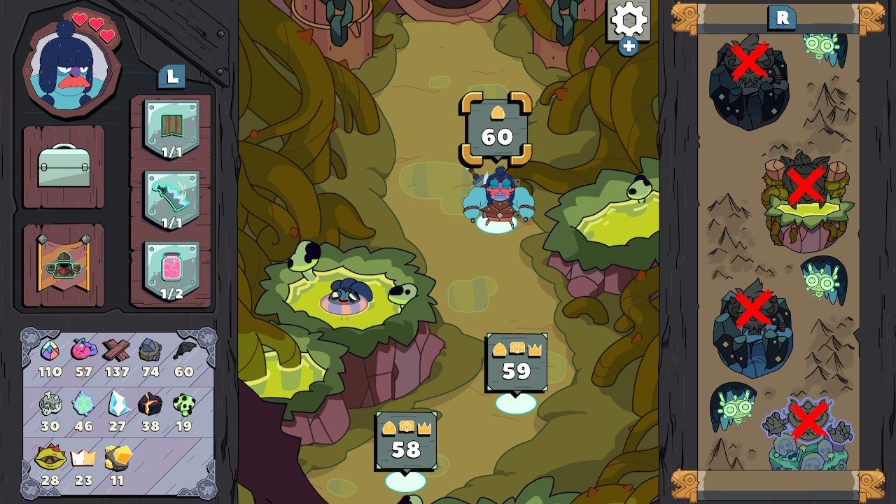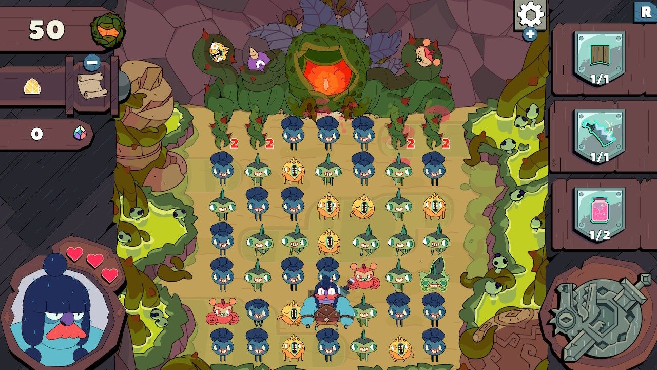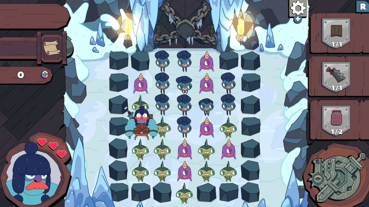 Un héros très costaud et pas très content, des ennemis coupés en deux, des pièges mortels, un équipement procurant différentes caractéristiques , et… des petits monstres mignons à relier entre eux dans un puzzle game addictif .