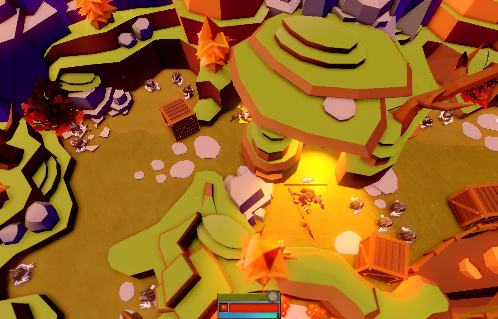 Une fois lancé vous vous retrouvez dans un HUB à partir duquel vous pourrez accéder aux quatre mondes du jeu . Pour le moment seule une porte vous est ouverte, en la franchissant vous accéderez à des niveaux qui surviennent aléatoirement et où vous devrez éliminer toutes les bestioles en présence pour accéder au niveau suivant. Une fois tous les niveaux d’un monde réussis vous débloquerez le monde suivant.