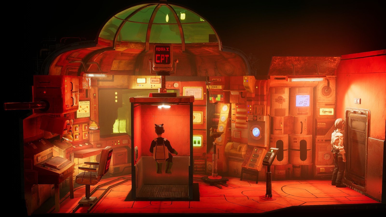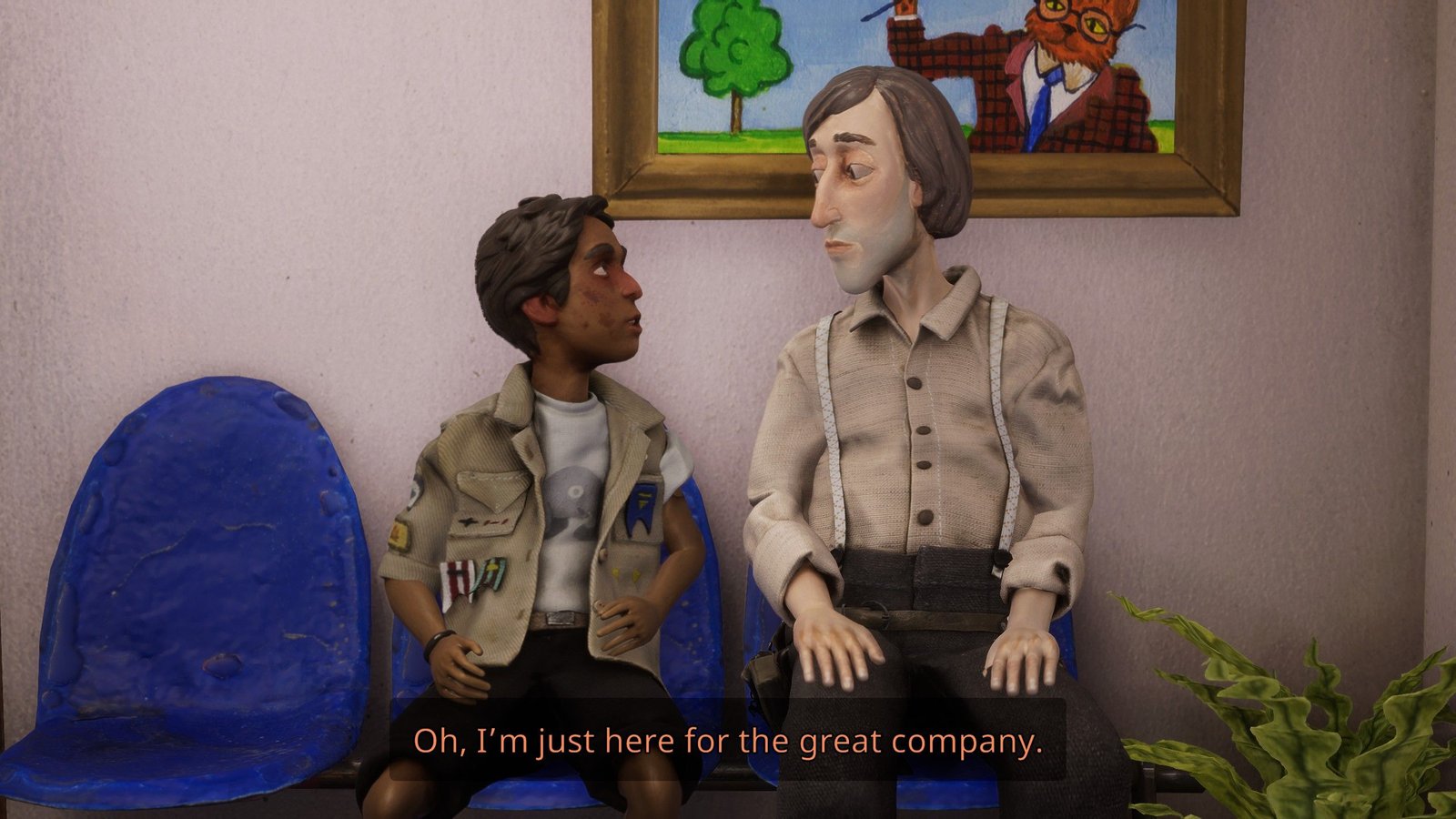 Commençons de suite par le plus évident, je parle bien entendu de la DA de ce Harold Halibut . Il aura fallu plus de 10 ans à Slow Bros. pour venir à bout de ce colossal projet, un temps de développement gargantuesque qui s’explique principalement par l’orientation artistique choisie par l’équipe, à savoir de l’animation stop-motion , style pâte à modeler, entièrement faite à la main. Et si l’investissement semble immense, on peut dire que le résultat est visuellement à la hauteur du travail effectué, pour peu que l’on apprécie ce genre de rendu. Disons-le tout de suite, Harold Halibut est magnifique. En mouvement, c’est tout autant impressionnant, voire encore plus avec toutes ces animations qui rendent vie à ce joli petit monde. On se croirait littéralement devant sa TV, et le jeu de lumière adopté est du plus bel effet. De ce côté-là, on est très vite conquis, et ce ne sont pas les quelques rares soucis de collisions ou de placement de personnages qui vont gâcher le plaisir.