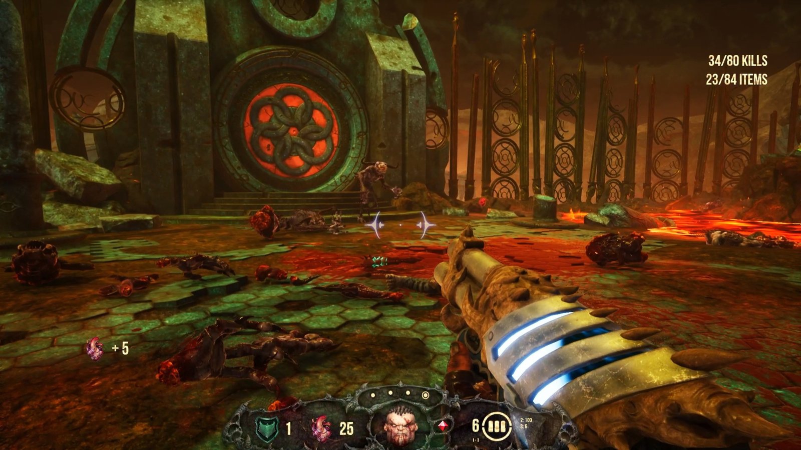 Aussi, Hellbound ressemble beaucoup trop à Doom, que ce soit les nouveaux ou les anciens, et ce à de nombreux moments. Il en tire les couleurs et l’ambiance du Doom moderne et ira jusqu’à proposer un écran de fin directement inspiré du Doom originel. Sincèrement, l’inspiration c’est bien, mais elle est toujours plus agréable quand elle amène de nouvelles choses plutôt que lorsqu’elle sert de justification pour faire la même chose mais « à sa sauce ». Et au rabais, surtout.